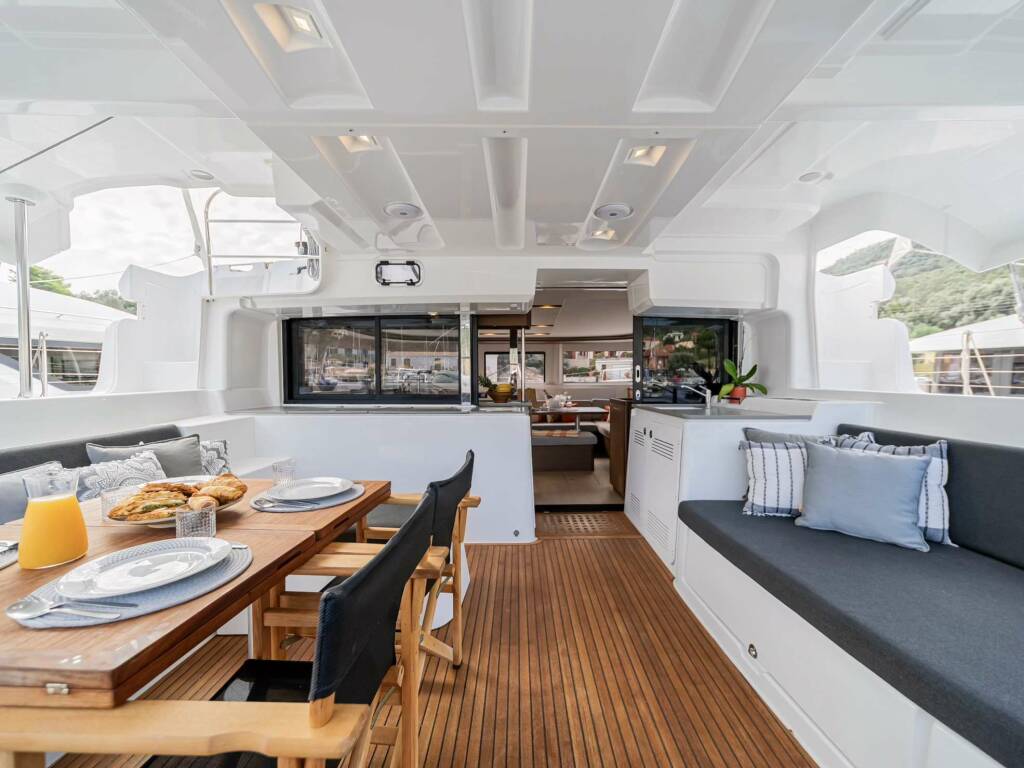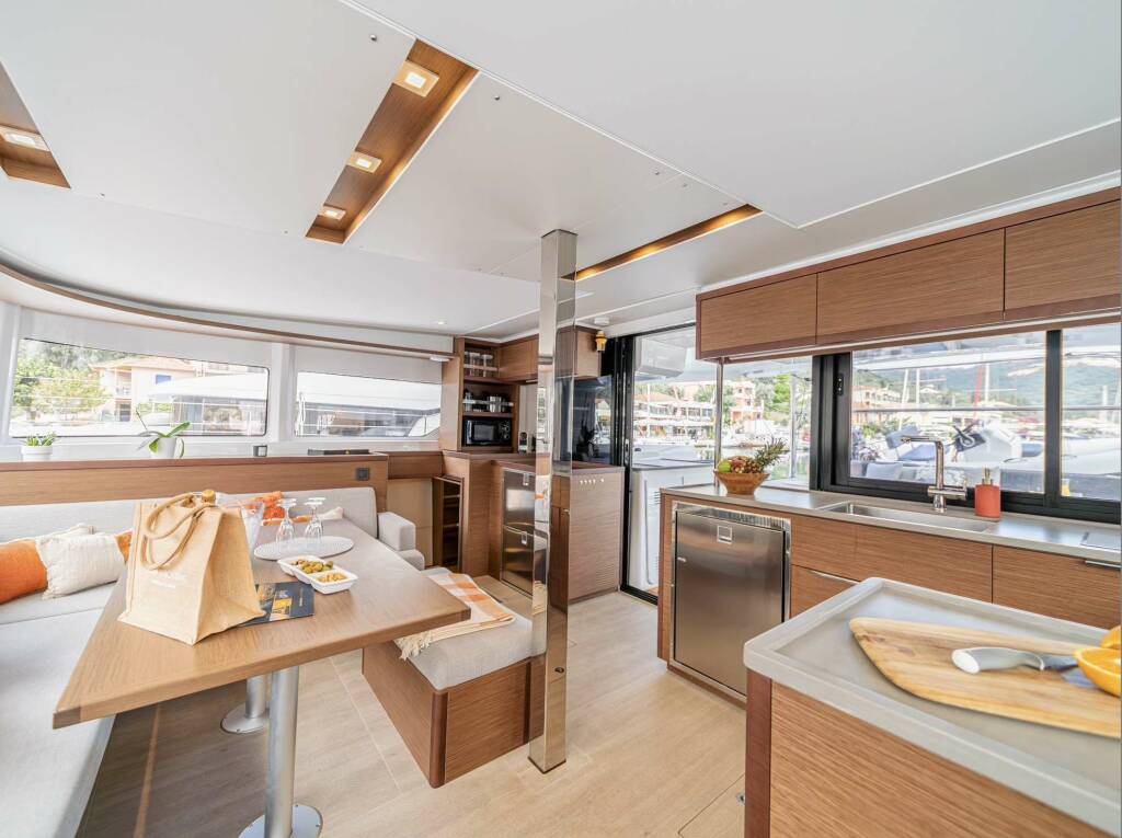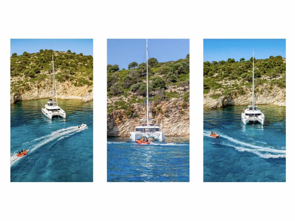 Luxury catamaran LINO, built in 2023 is anchored in the Greece. It has 3 cabins, can accommodate 6 people.