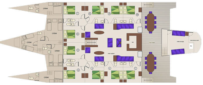 Accommodation: * There are ten double staterooms, each can be set up to suit your needs with a double bed or twins, side by side. Accommodation aboard Cuan Law is spacious and comfortable. You won't find cramped bunk beds aboard Cuan Law and you've got plenty of walking around space.