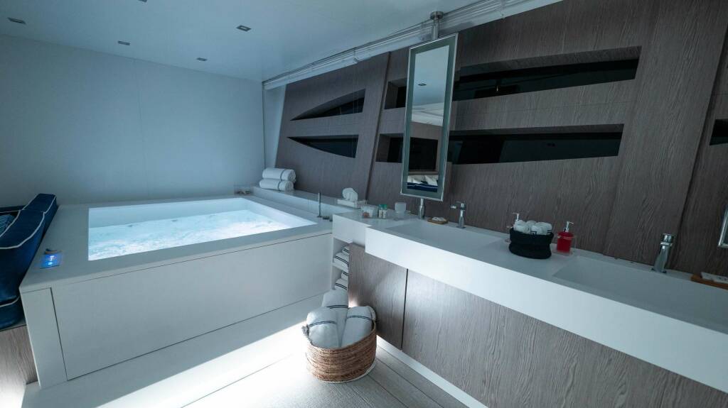 • Catamaran for generous spaces, superior stability, and enhanced privacy.