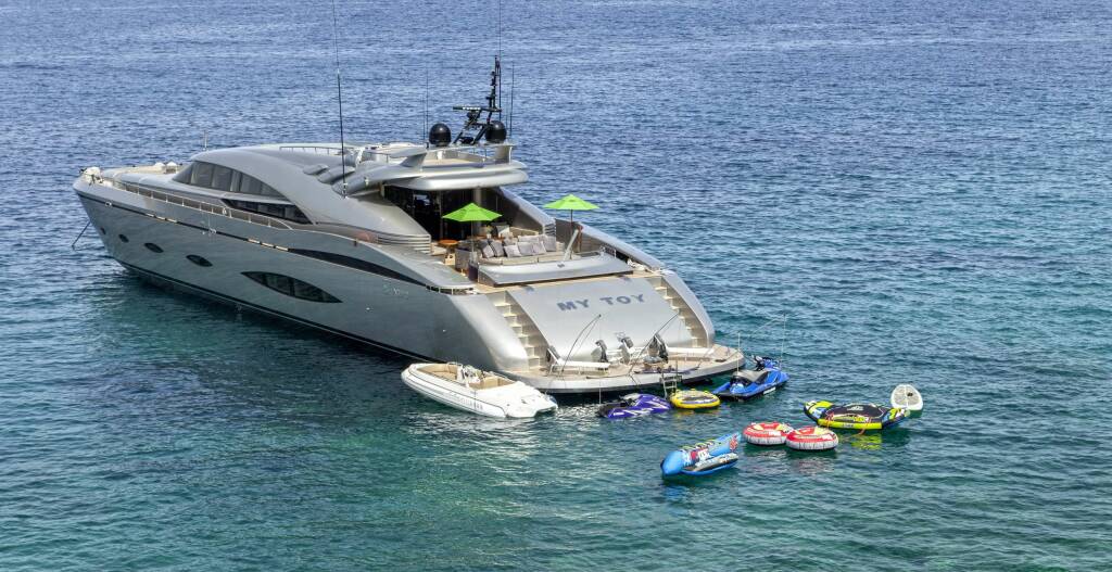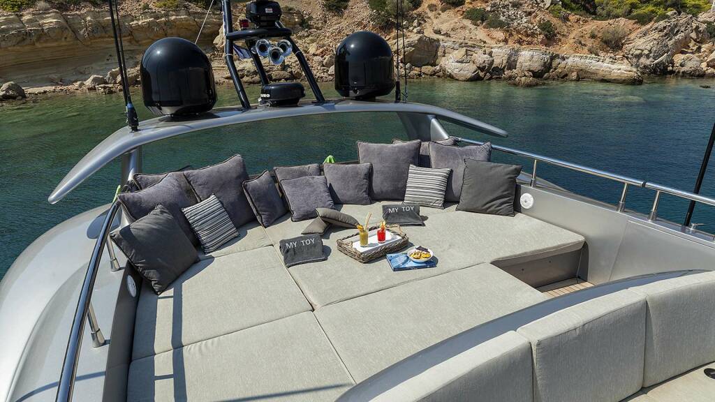Luxury motor yacht MY TOY, built in 2009 is anchored in the W. Med -Naples/Sicily, Greece. It has 5 cabins, can accommodate 10 people.