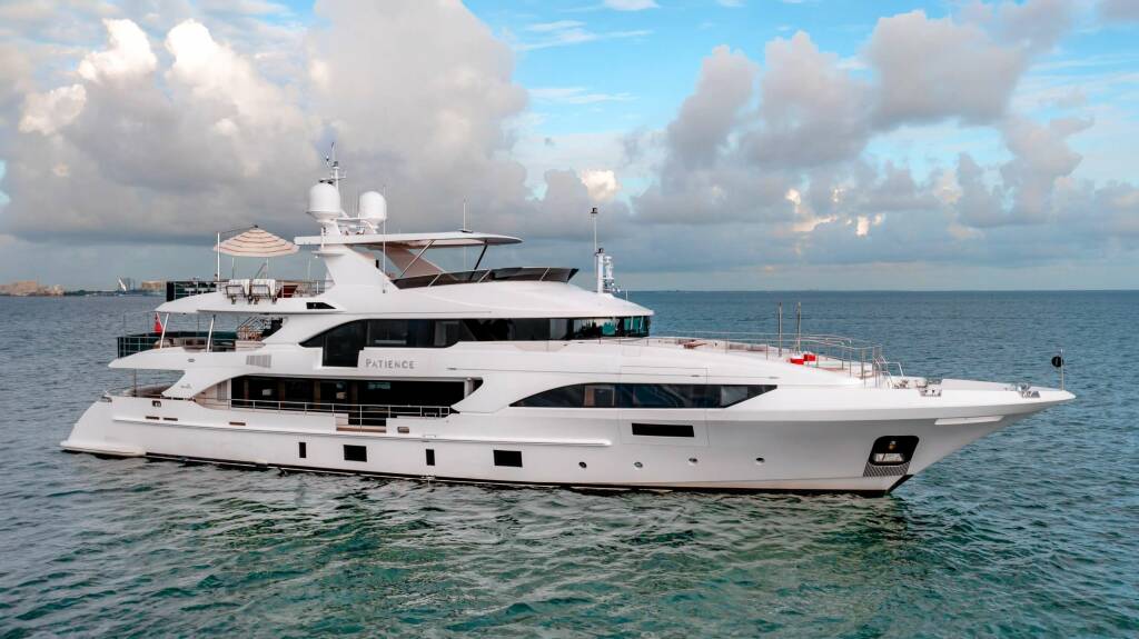 Luxury motor yacht PATIENCE, built in 2012 is anchored in the Bahamas. It has 5 cabins, can accommodate 10 people.