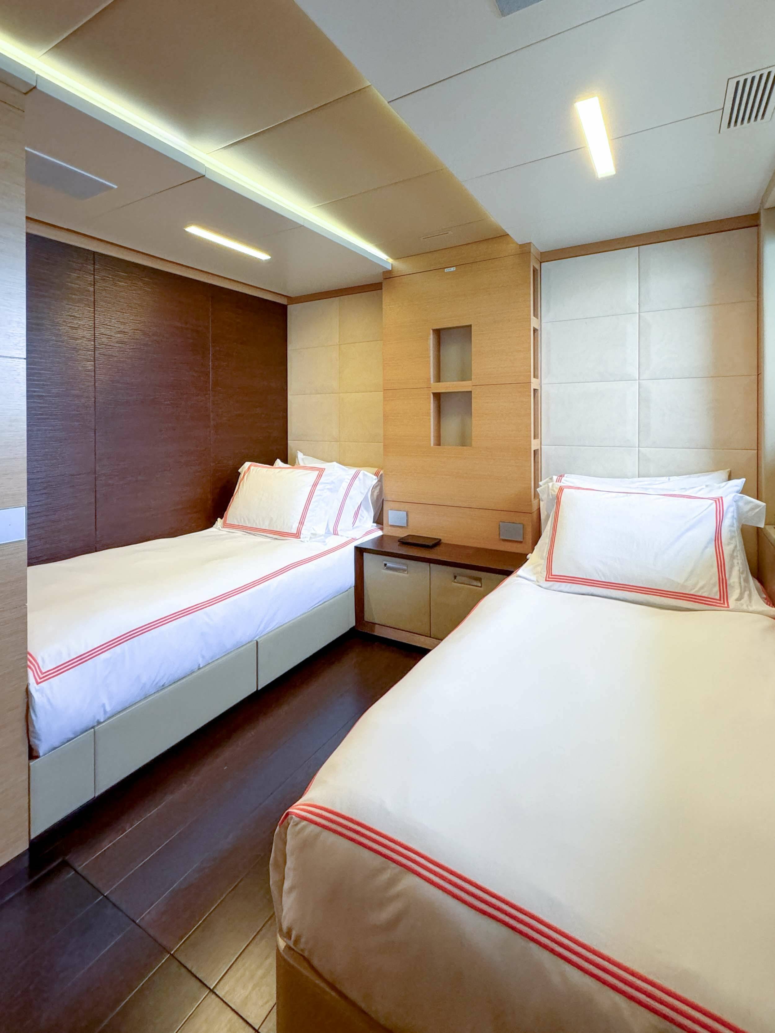 The additional double cabin on the bridge deck can be used in replacement of the port twin on a case by case basis. The crew will need to be notified at least 1 month in advance in order to receive approval to use this cabin.