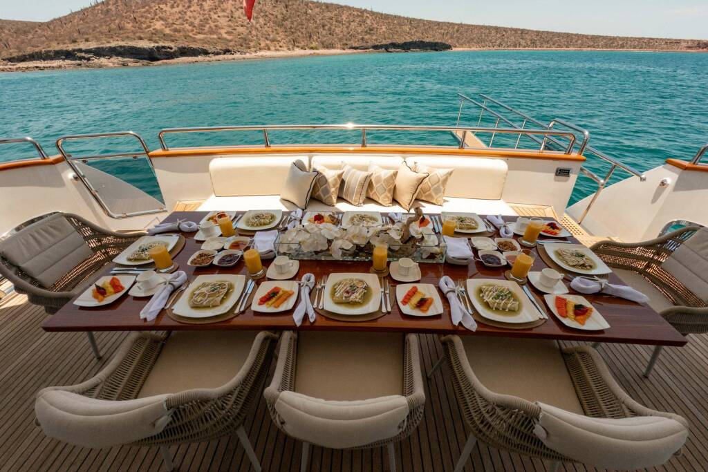 The base rate includes the rental of the yacht, the use of all onboard equipment, the presence of the crew, and the related insurance coverage.