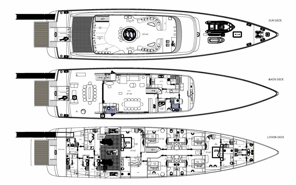 The base rate includes the rental of the yacht, the use of all onboard equipment, the presence of the crew, and the related insurance coverage.