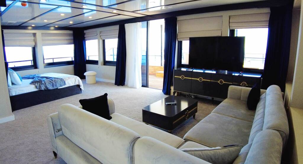 Accommodation: The 52 m motor yacht can accommodate up to 36 person with her luxury 13 cabins. even she can take up to 600 guests and this is a unique option those looking for night entertainment. The cabin form consist of 3 x Master and 10 x double. Flybridge deck has 2 jacuzzis and 1 master has its own private jacuzzi.