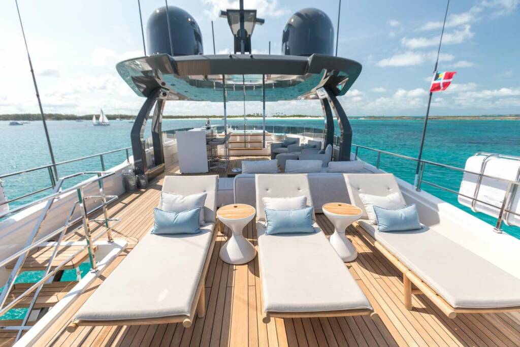 Luxury motor yacht EROS, built in 2019 is anchored in the Bahamas. It has 5 cabins, can accommodate 10 people.