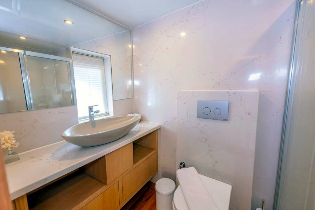 • Catamaran for generous spaces, superior stability, and enhanced privacy.