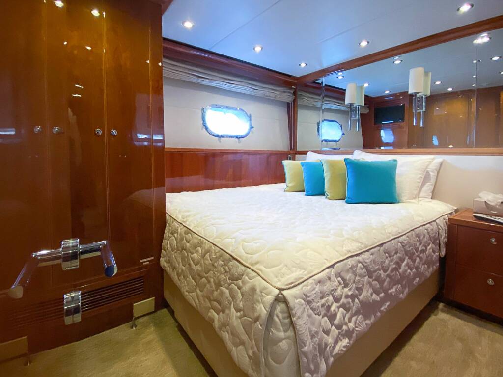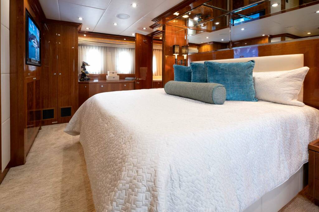 Accommodation: Flexible stateroom configuration for couples, family, and friends. Ondeck Master stateroom with a king-sized bed, second Master Stateroom deck with king-sized bed.