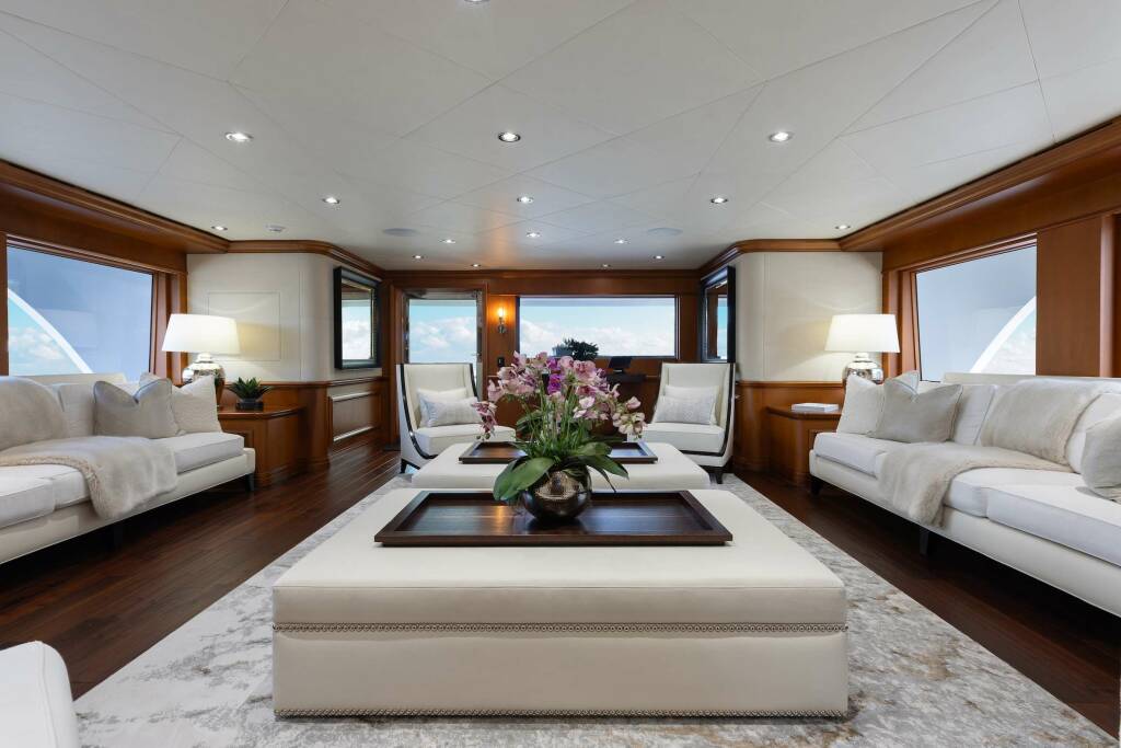 Accommodation: M3 accommodates ten owner's and guests in five luxurious staterooms plus crew quarters for up to eight in four cabins.Her custom, updated interior features honey glazed maple joinery along with all new carpet, new marble foyer flooring, new window treatments, upholstery and soft goods with rich fabrics and furnishings throughout the yacht in 2023. Her classic main salon and formal dining for ten set the tone for an elegant yachting experience.