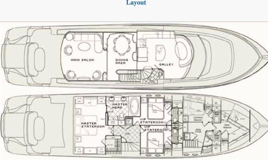 Accommodation: Sleeps 8 in 4 staterooms plus 2 in crew
