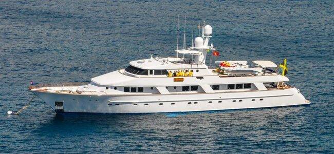 Luxury motor yacht RENA, built in 1989 is anchored in the Bahamas. It has 5 cabins, can accommodate 12 people.