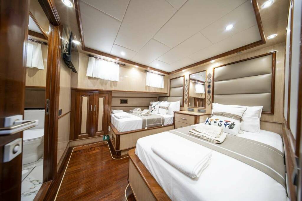 Luxury motor yacht Kaan Ayaz, built in 2025 is anchored in the Turkey. It has 6 cabins, can accommodate 12 people.