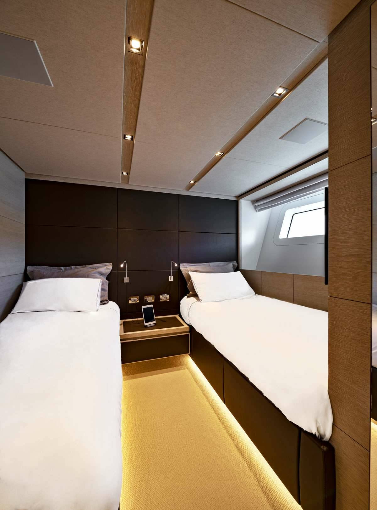 • Catamaran for generous spaces, superior stability, and enhanced privacy.