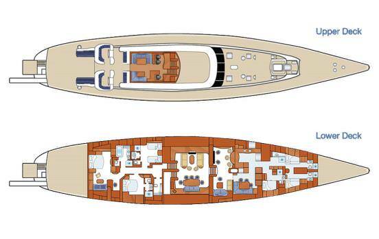 Accommodation: Full beamowner's cabin located aft with king-sized bed, study area and bathroom en-suite.