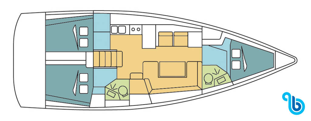 a hostess/cook is on board, 1 double cabin will be required for him/her. If both a skipper and a hostess/cook are on board, 1 double cabin and 1 forepeak cabin will be required for them. Exceptions exists for specific layouts, Sales Agents will