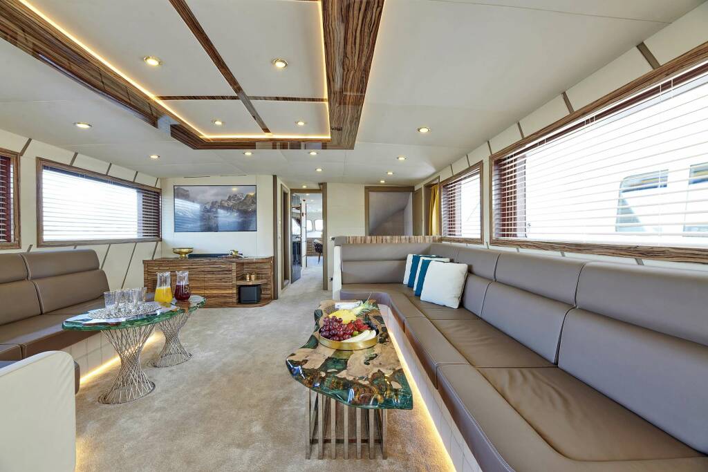 Other Entertainment: 6 TV´s, 2x Generator, Water maker, Onboard Wi-Fi Internet access in every cabin, Full AC, Wifi TV with Bose Soundbar System, Business Corner with printer (air print), Ipad, Macbook, Nespresso Machine, Full equipped Bar, 2 x Icemaker, USB Charging in all cabins and Decks, Hair dryer in all cabins. Powered by two economic 6 cylinder diesel engines and auxiliaries include two generators, air-conditioning and Bow / Stern thrusters. Beauty services, Dance classes, show programs upon request with extra charge.