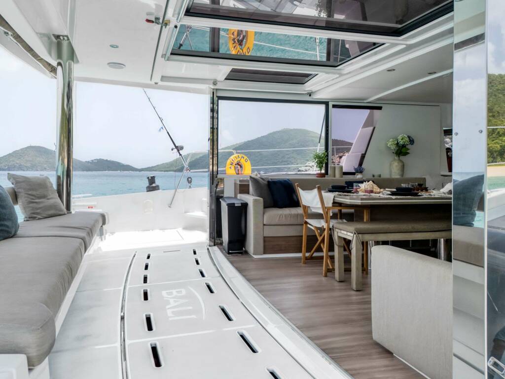 Catamarán de lujo ANDIAMO, construido en 2023 está anclado en Caribbean Leewards, Caribbean Virgin Islands (BVI). Tiene 4 cabinas, puede acomodar 8 personas.