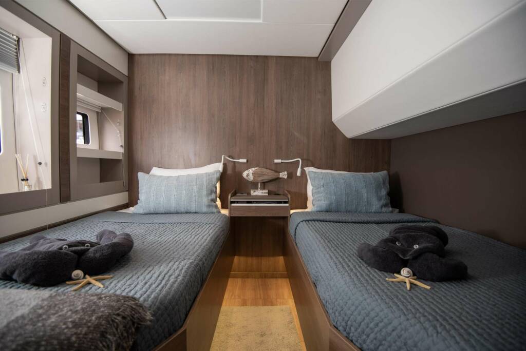 Crew take starboard mid-ship cabin (twin cabin), but will move to starboard aft cabin on request for $800 fee.
