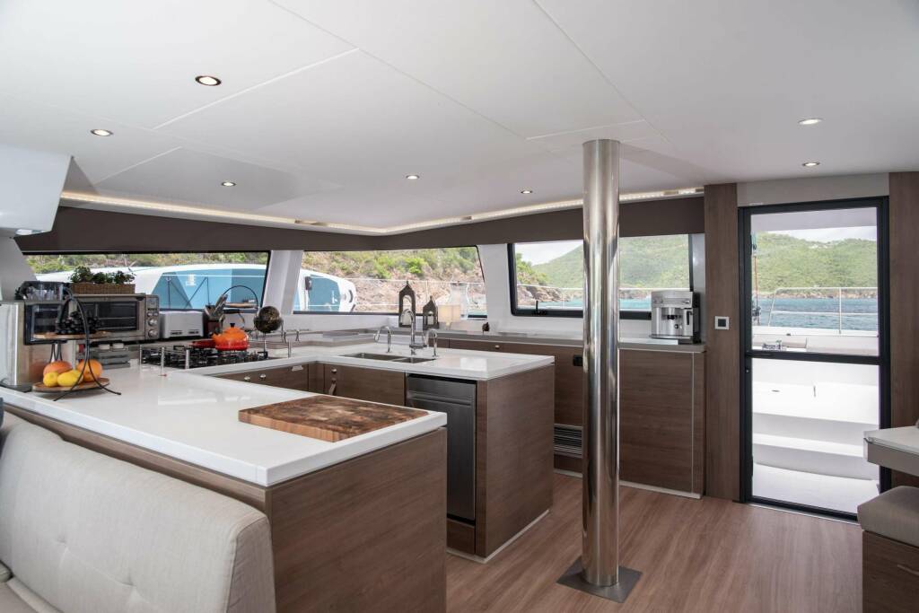 Main deck has a bright and airy main salon (fully air-conditioned) as the galley direct access to the forward cockpit lounge area.