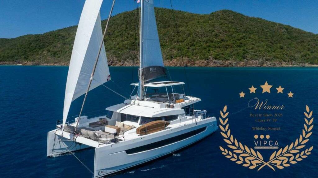 Accommodation: 4 queen berth guest cabins each with a private en-suite electric head, stall shower and sink/vanity. All cabins with exception of starboard aft cabin are dry heads.