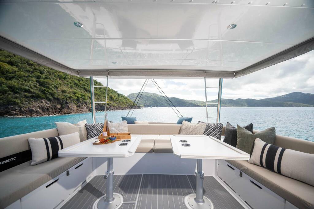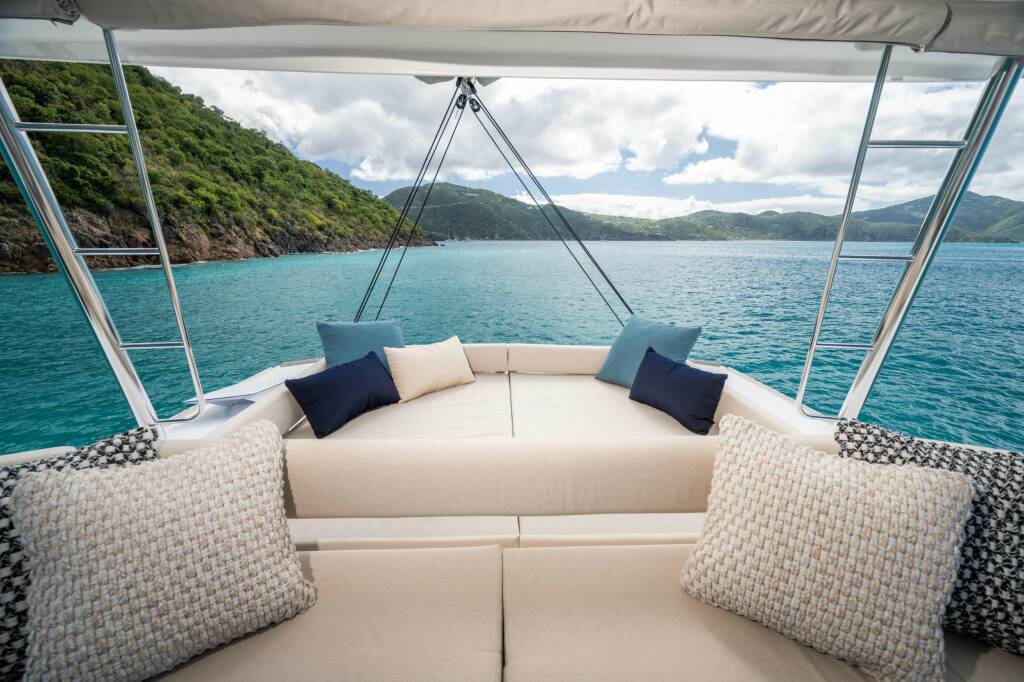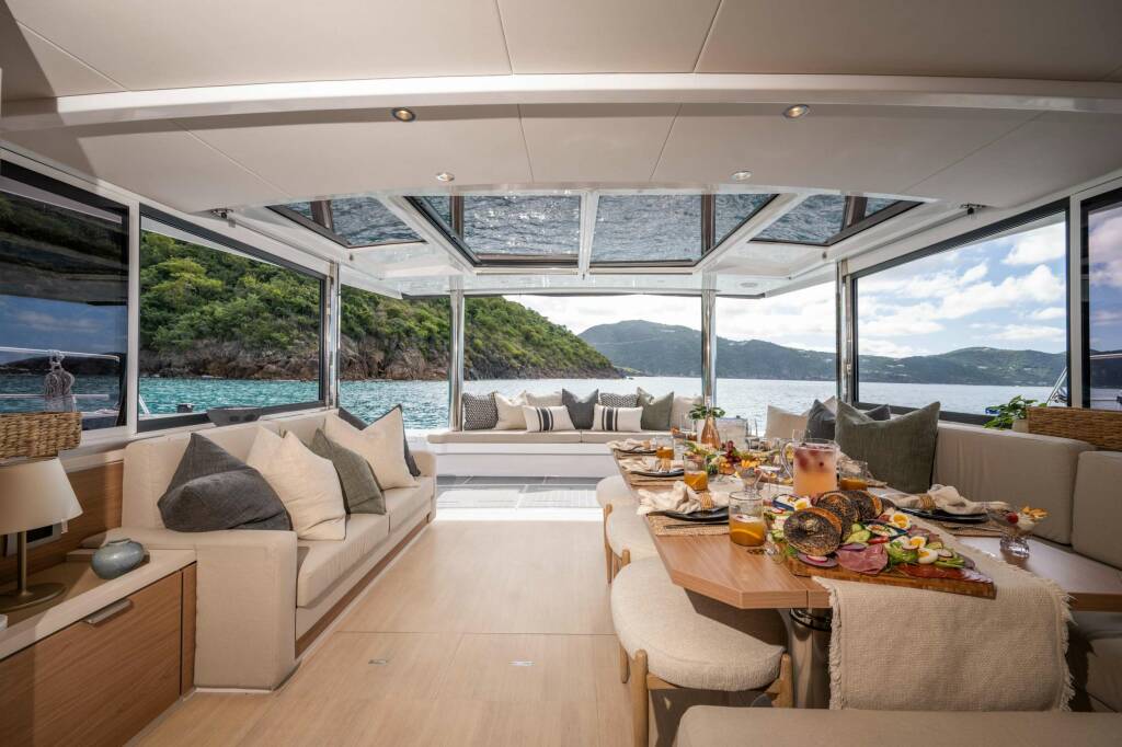 Main deck has a bright and airy main salon (fully air-conditioned) and the galley has direct access to the forward cockpit lounge area.