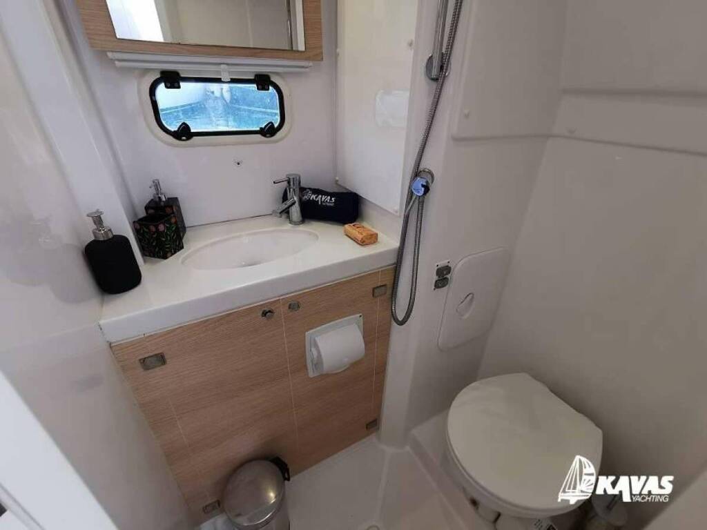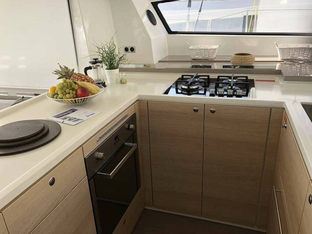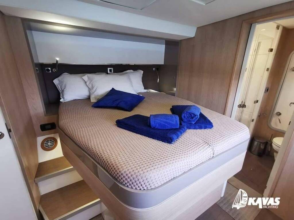 Catamarán de lujo Kos 54.CAT, construido en 2019 está anclado en Greece. Tiene 8 cabinas, puede acomodar 12 personas.
