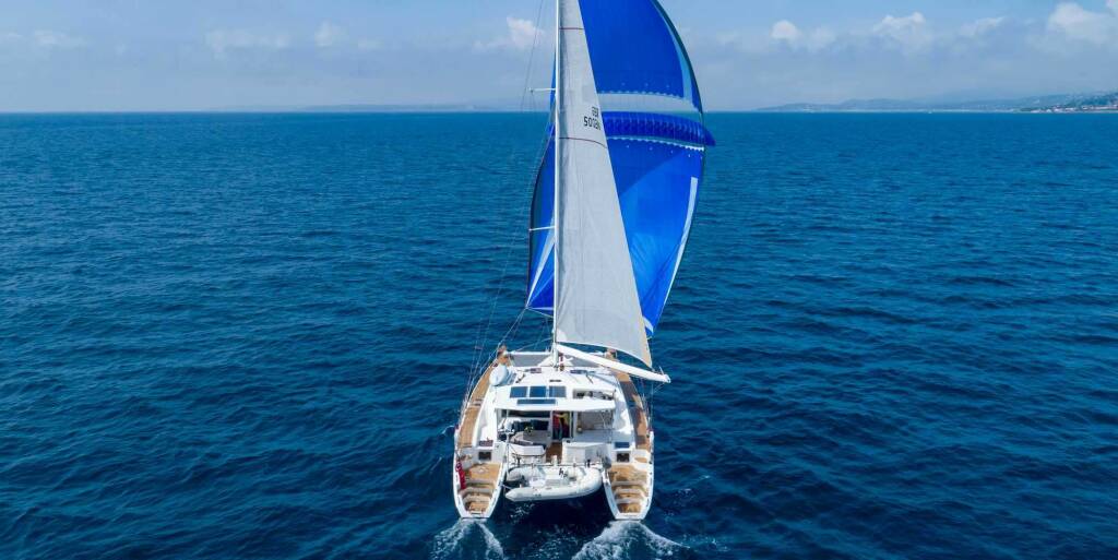Catamarán de lujo CURANTA CRIDHE, construido en 2011 está anclado en W. Med -Naples/Sicily, W. Med -Riviera/Cors/Sard.. Tiene 3 cabinas, puede acomodar 6 personas.
