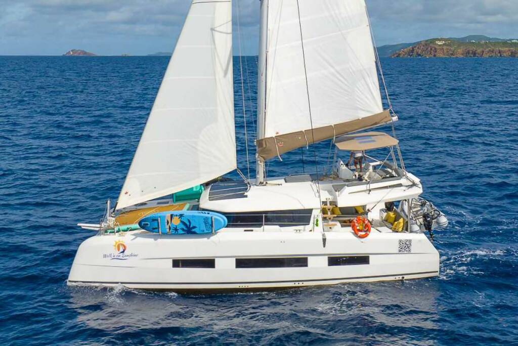 Catamarán de lujo WALK'N ON SUNSHINE, construido en 2023 está anclado en Caribbean Virgin Islands (US/BVI), Caribbean Leewards. Tiene 4 cabinas, puede acomodar 8 personas.