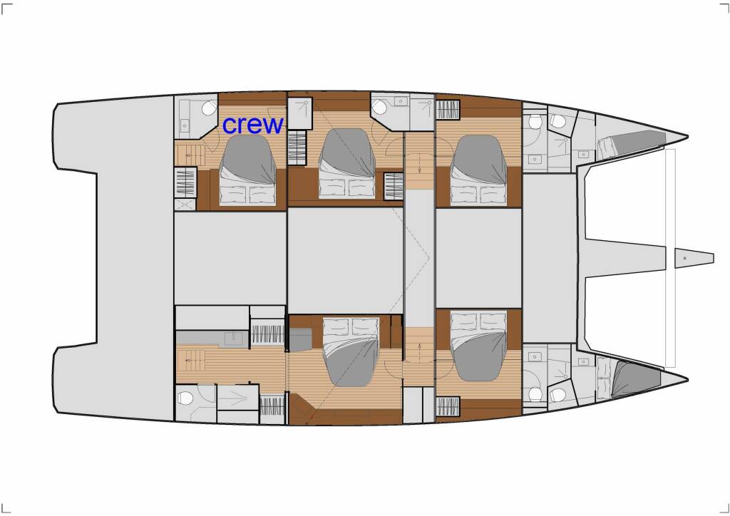 2 queen cabin to port, with the aft cabin with a deck access- is the crew cabin