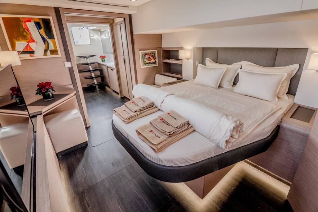 Catamarán de lujo ASTORIA, construido en 2021 está anclado en Greece. Tiene 5 cabinas, puede acomodar 10 personas.