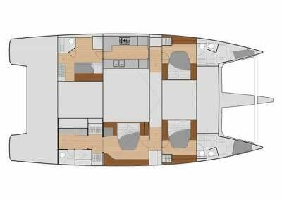 Accommodation: One master cabin (bed size 1,60m x 2,00m), 2 queen bed guest cabins (bed sizes 1,60m x 1,90m), one cabin with bunk beds (bed sizes: upper bed 0,80cm x 1,90m & lower bed 0,70cm x 1,87m) all with private bathrooms