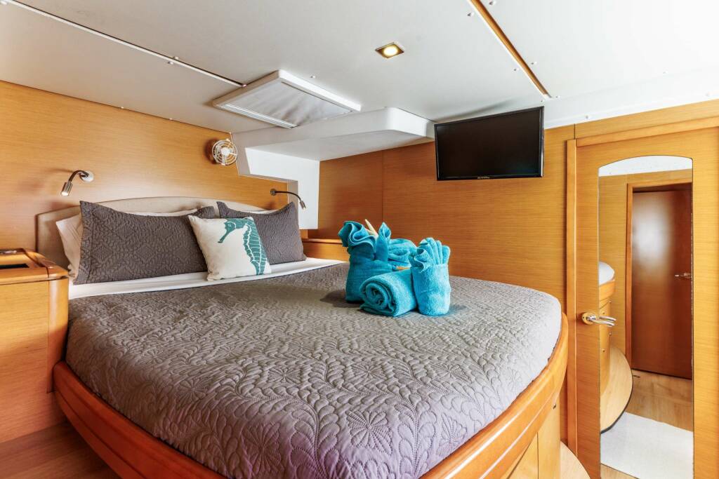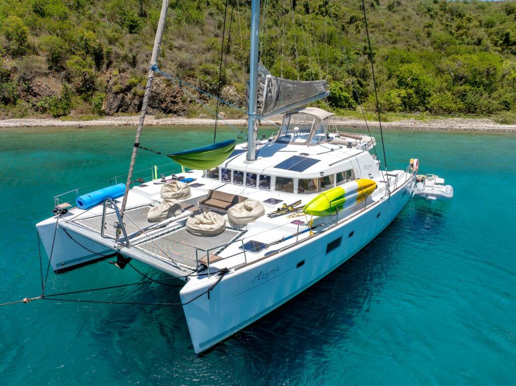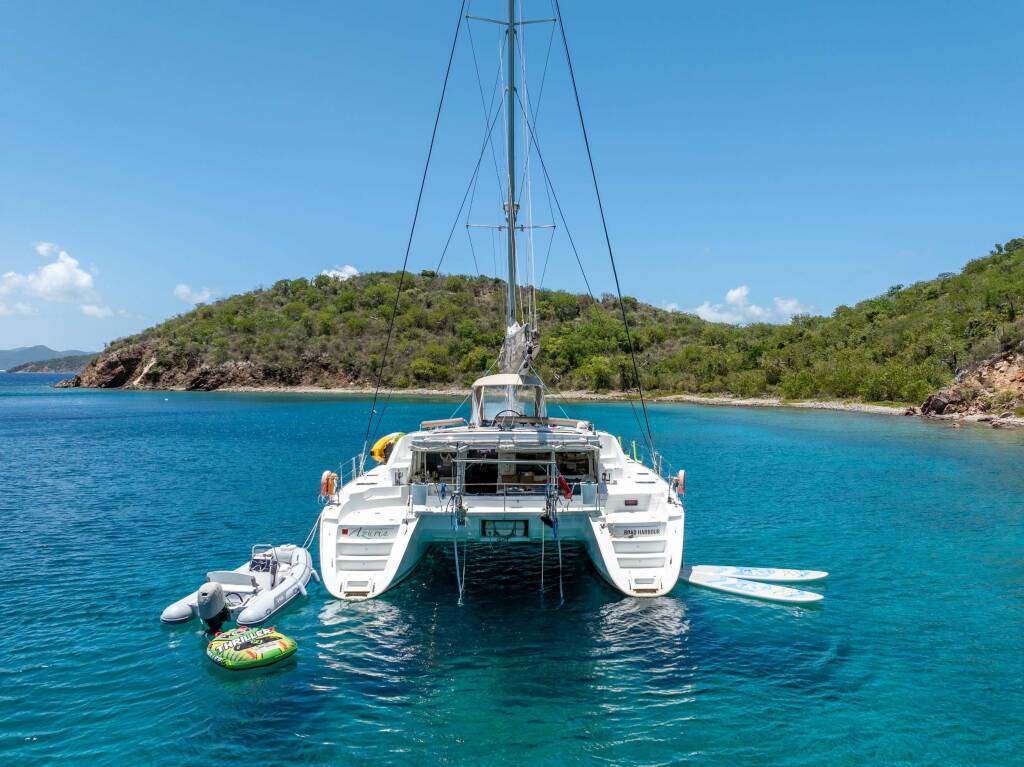 Catamarán de lujo AZURIA, construido en 2011 está anclado en Caribbean Virgin Islands (BVI). Tiene 3 cabinas, puede acomodar 6 personas.