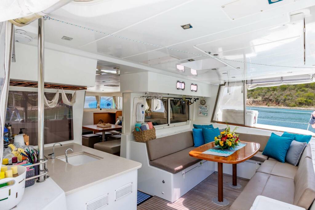 Spacious main salon and cockpit for lounging, dining, socializing and watching the sunsets.