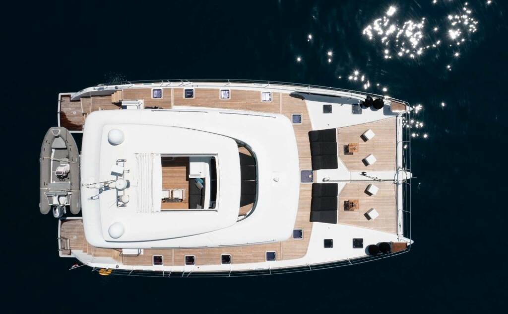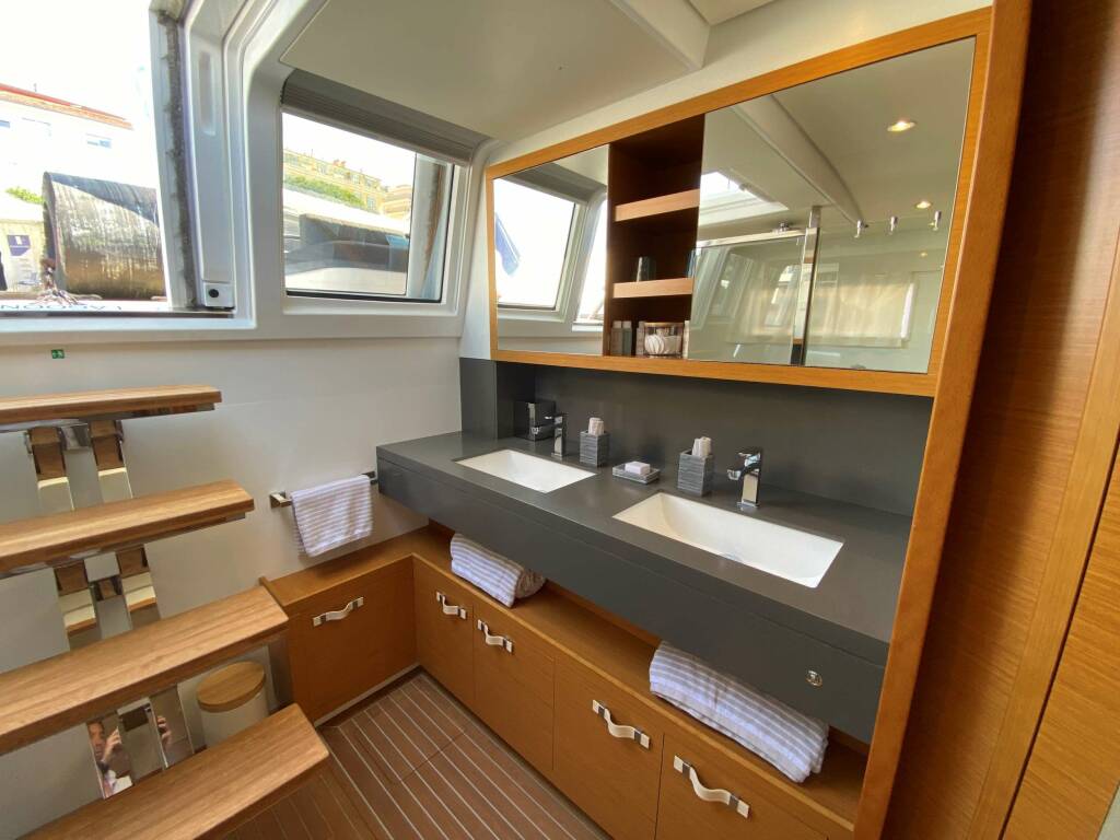 Catamarán de lujo LA FREGATE, construido en 2017 está anclado en W. Med -Riviera/Cors/Sard.. Tiene 4 cabinas, puede acomodar 8 personas.