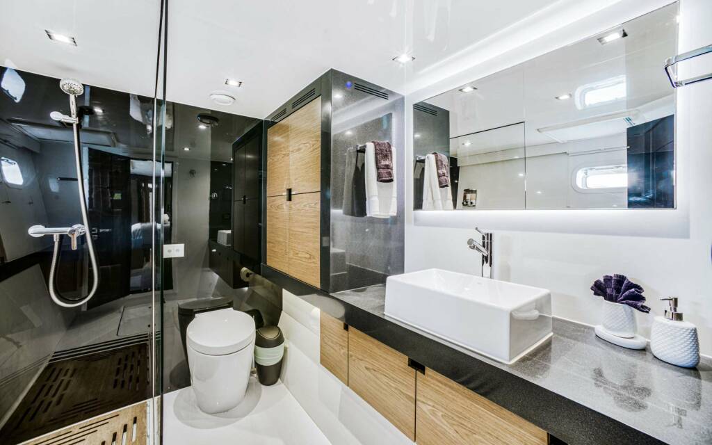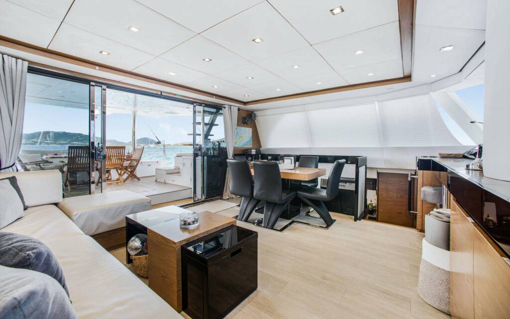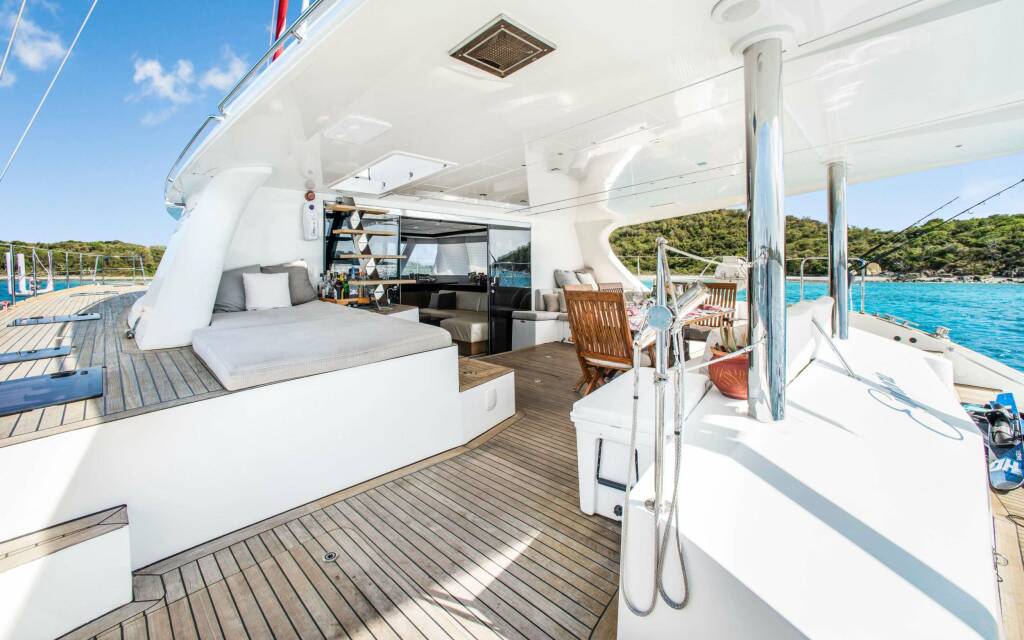 Catamarán de lujo EUPHORIA, construido en 2016 está anclado en Caribbean Virgin Islands (US/BVI), Caribbean Virgin Islands (US). Tiene 3 cabinas, puede acomodar 6 personas.