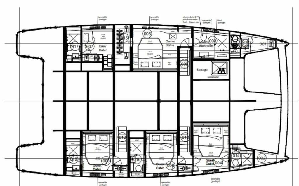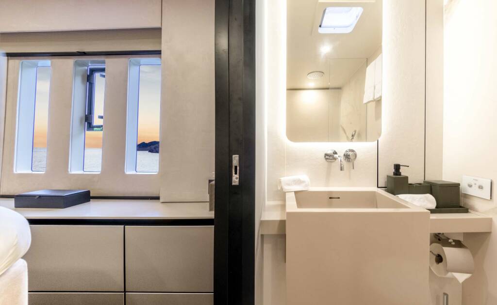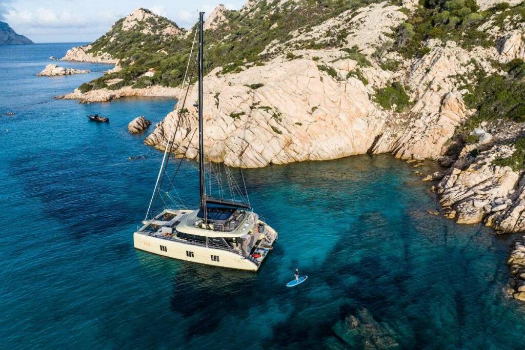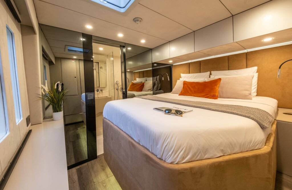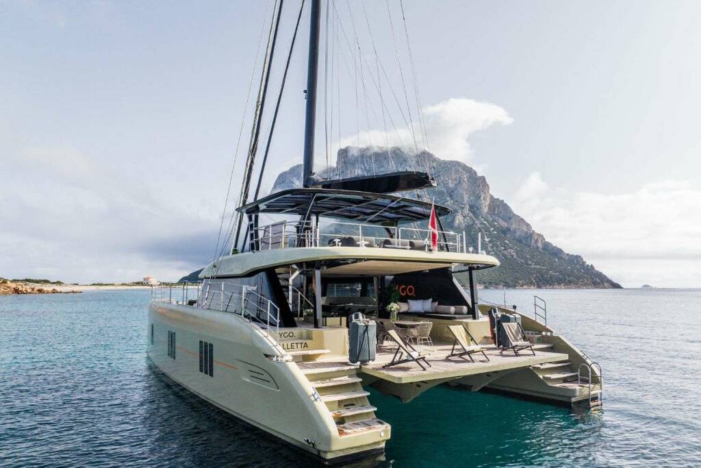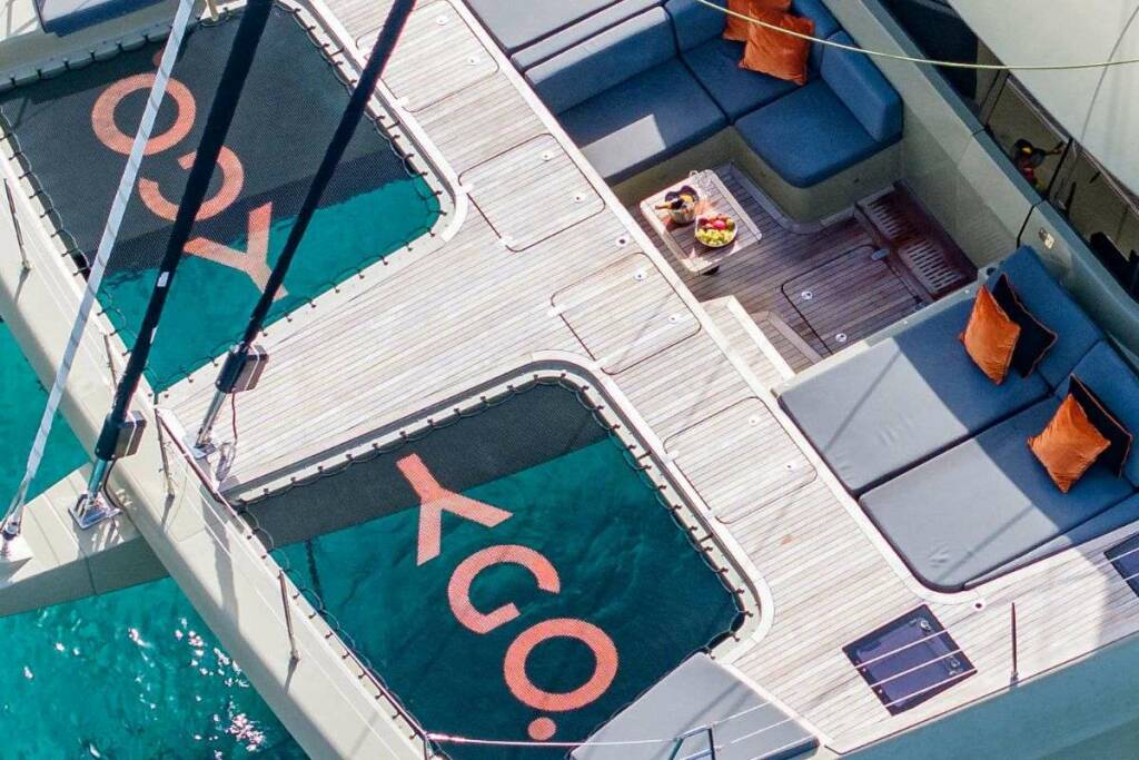Catamarán de lujo YGO., construido en 2022 está anclado en W. Med -Riviera/Cors/Sard., W. Med - Spain/Balearics. Tiene 4 cabinas, puede acomodar 8 personas.