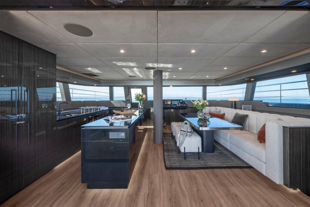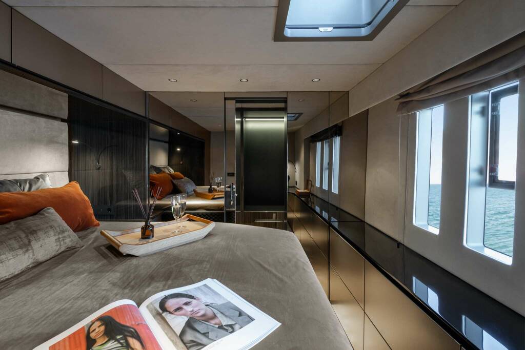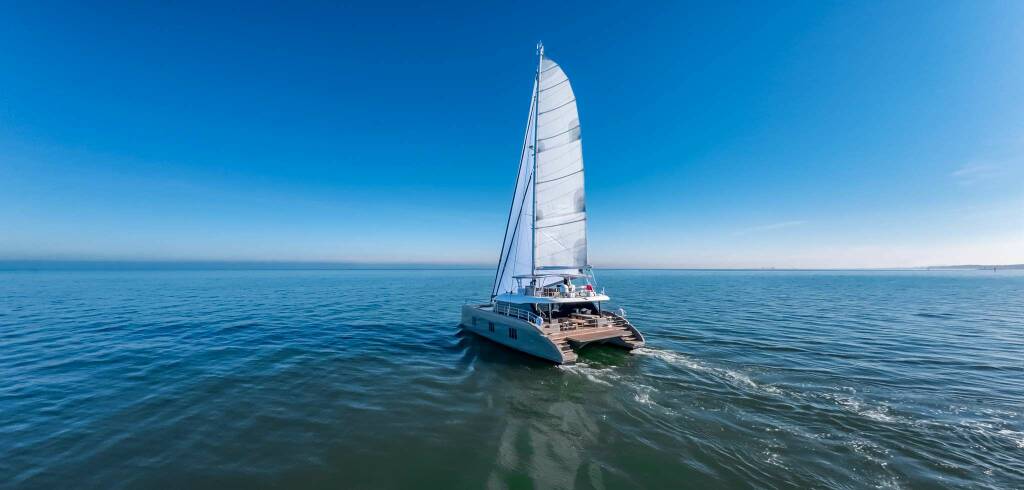 Catamarán de lujo YLIME, construido en 2023 está anclado en W. Med -Riviera/Cors/Sard.. Tiene 4 cabinas, puede acomodar 8 personas.