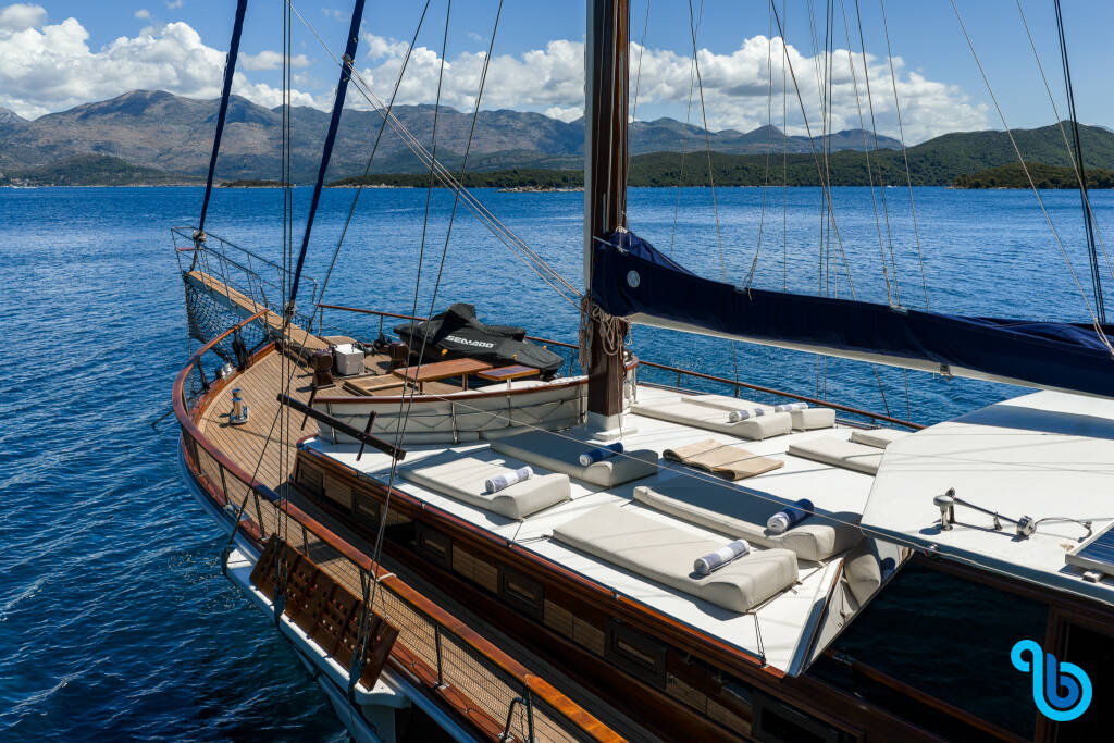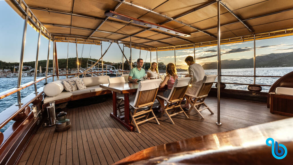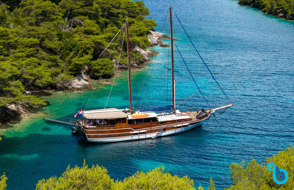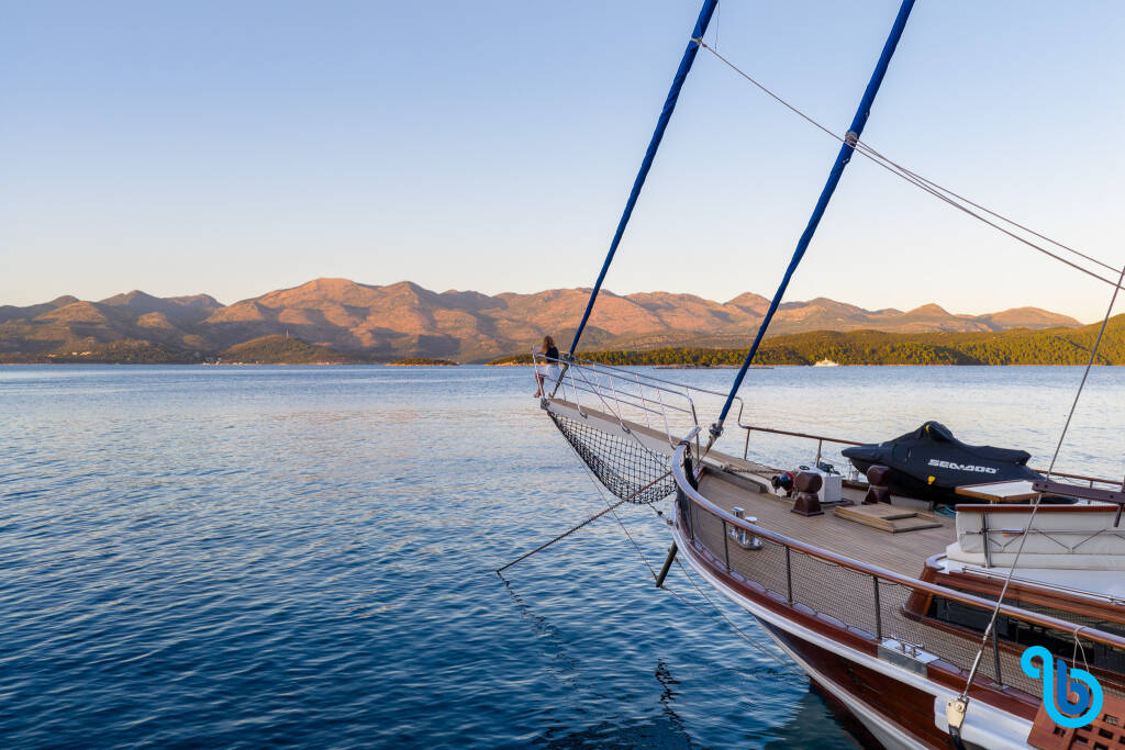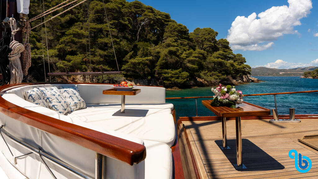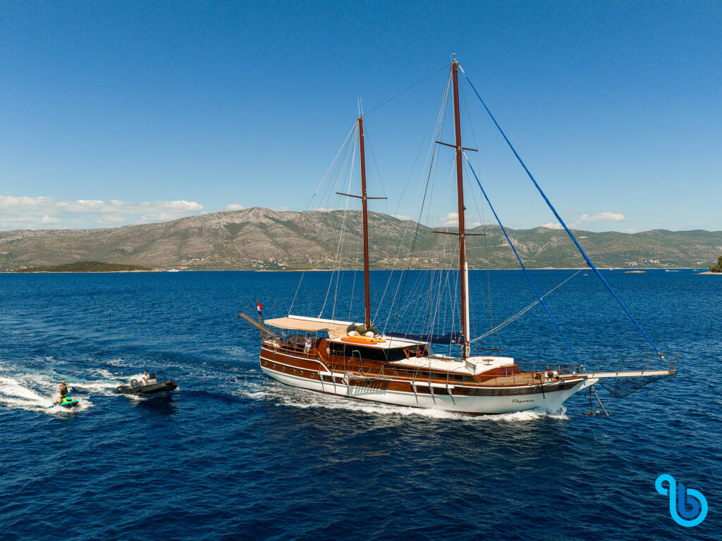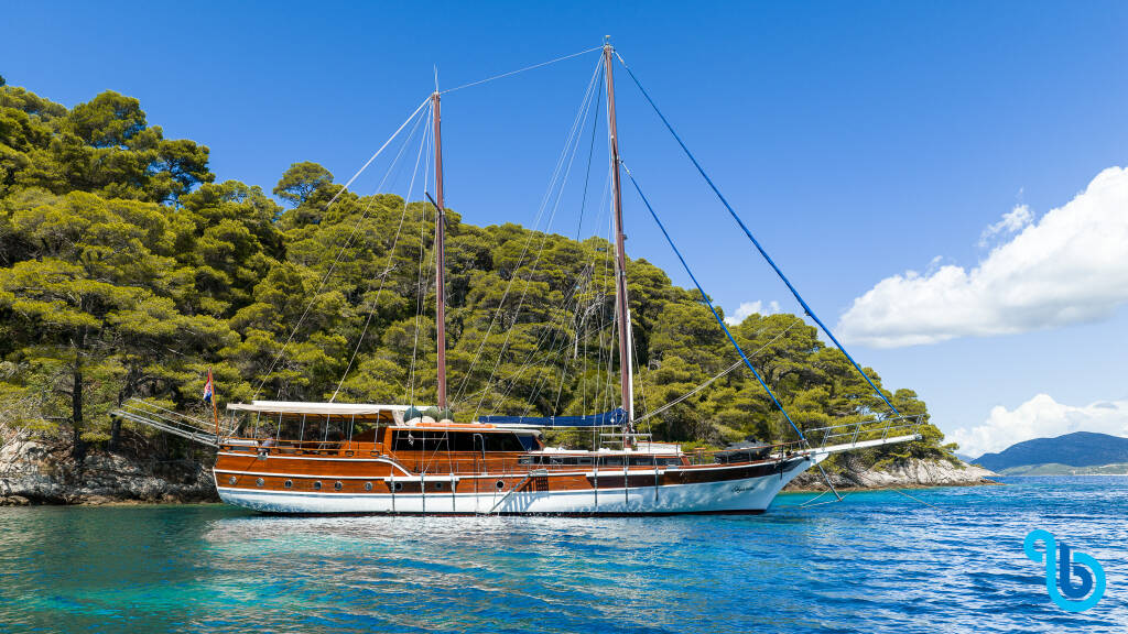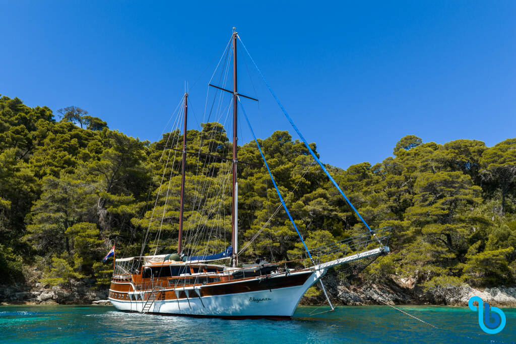 Goleta Gulet Eleganza, construido en 1997 está anclado en Croacia. Tiene 5 cabinas, puede acomodar 10 personas.