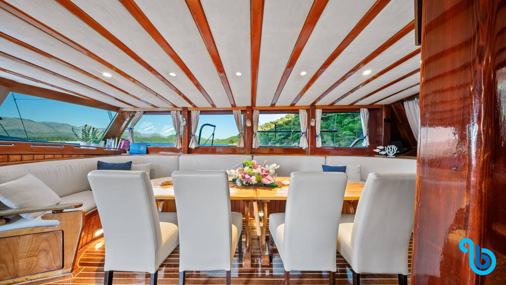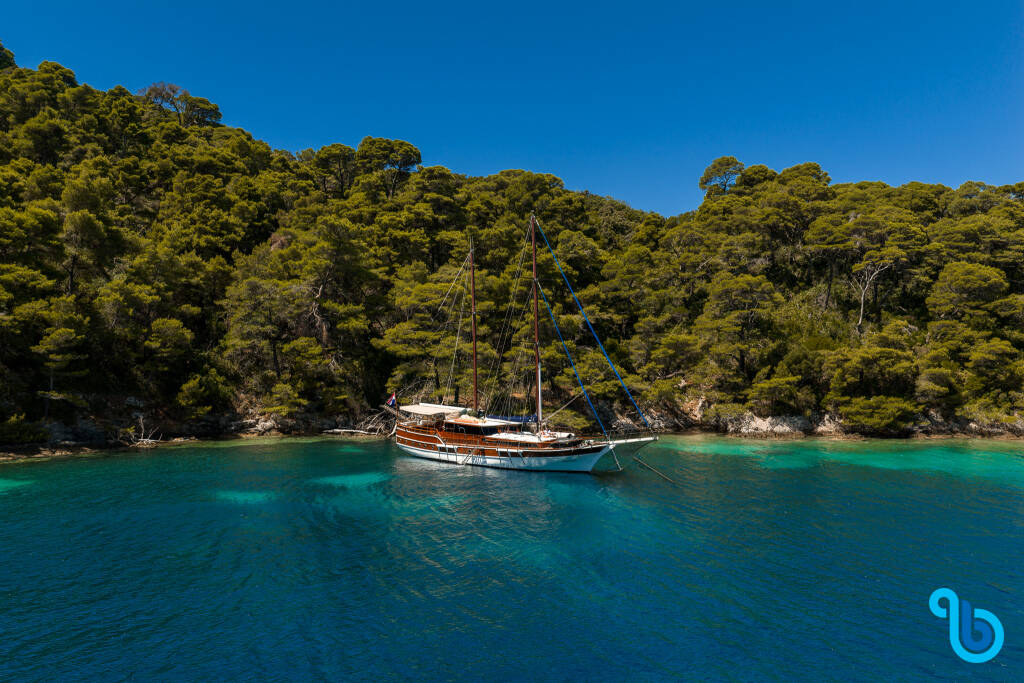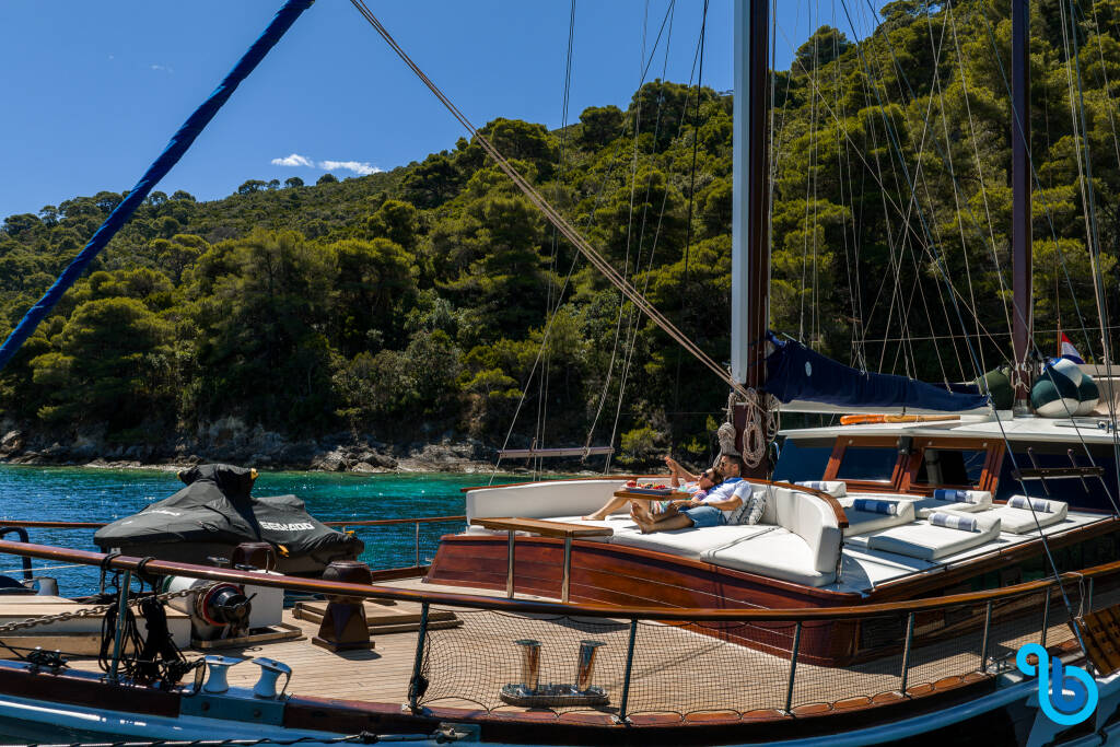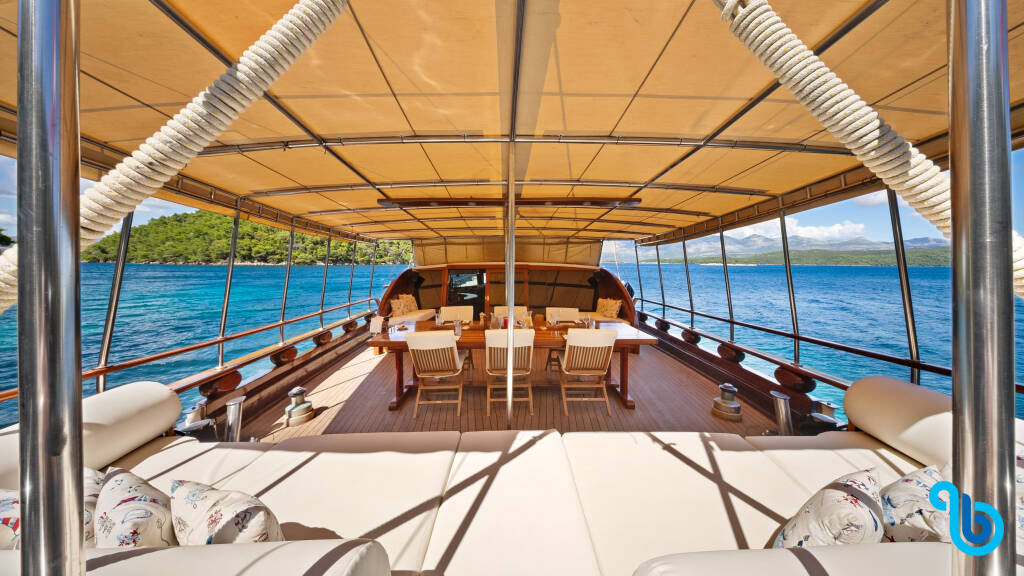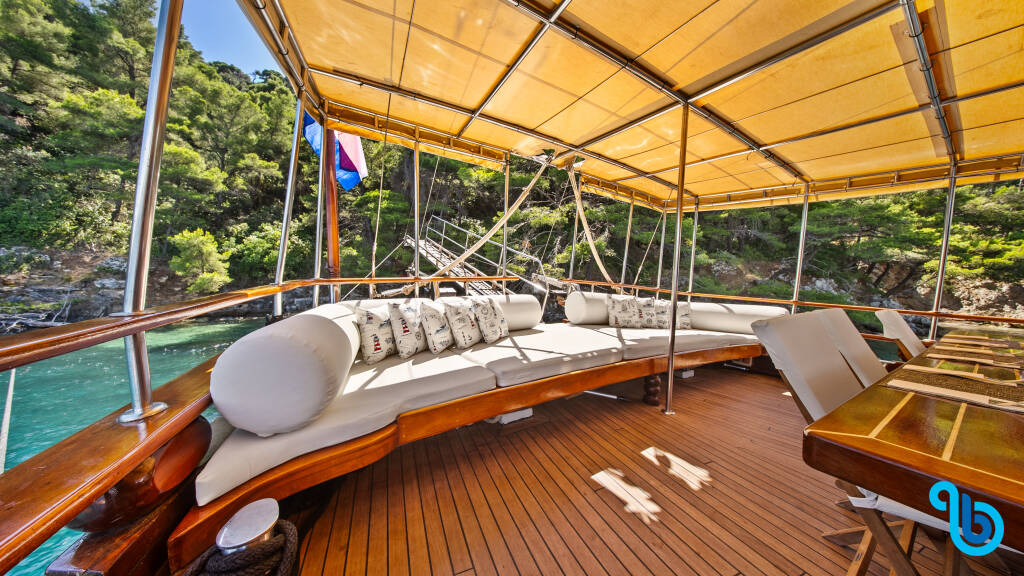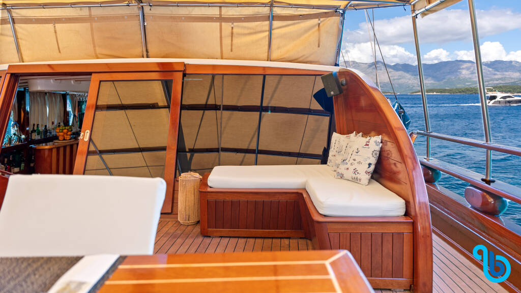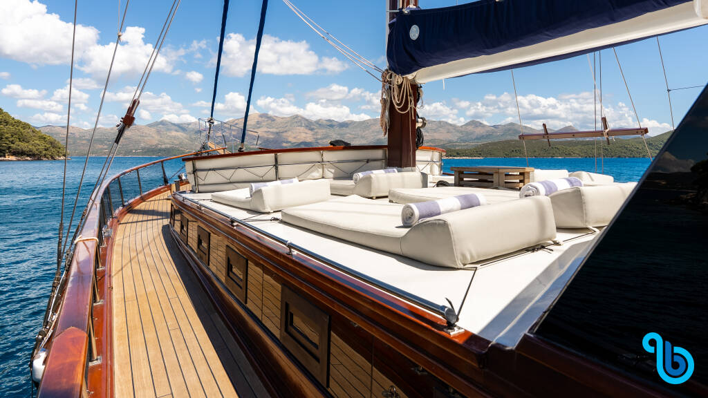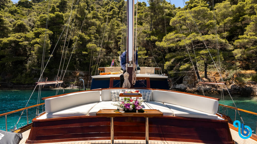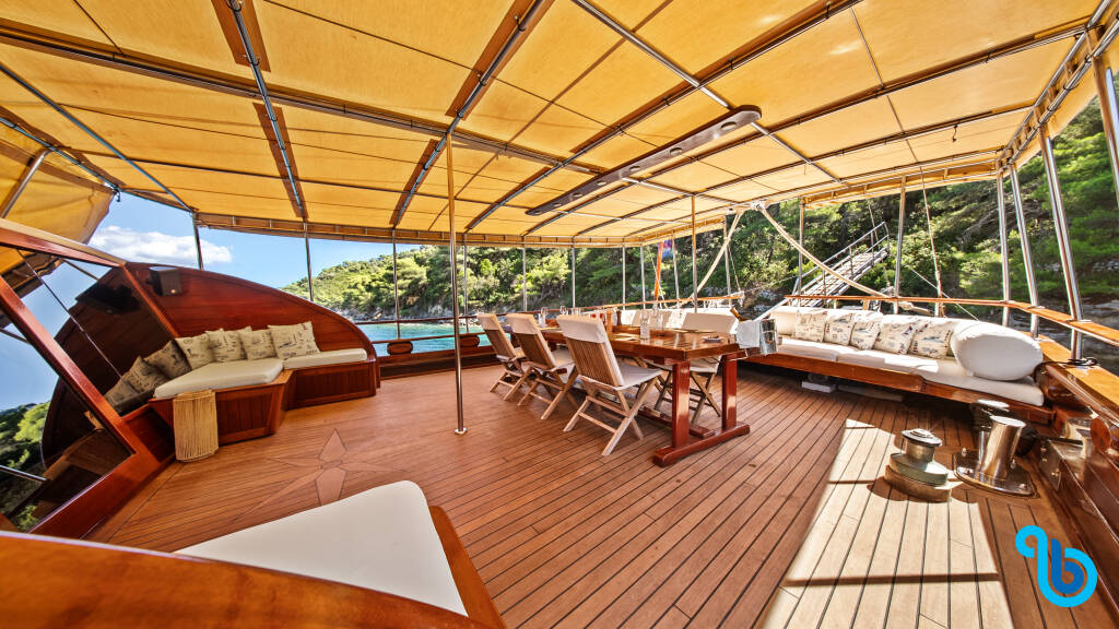 Goleta Gulet Eleganza, construido en 1997 está anclado en Croacia. Tiene 5 cabinas, puede acomodar 10 personas.