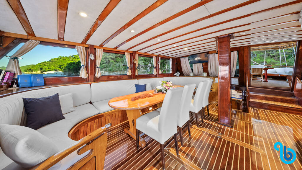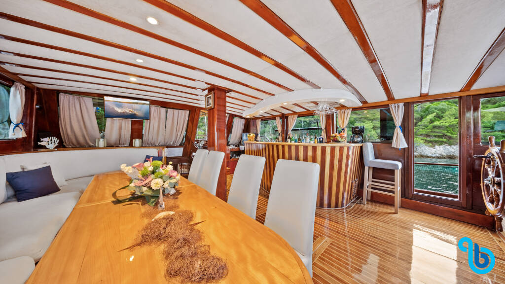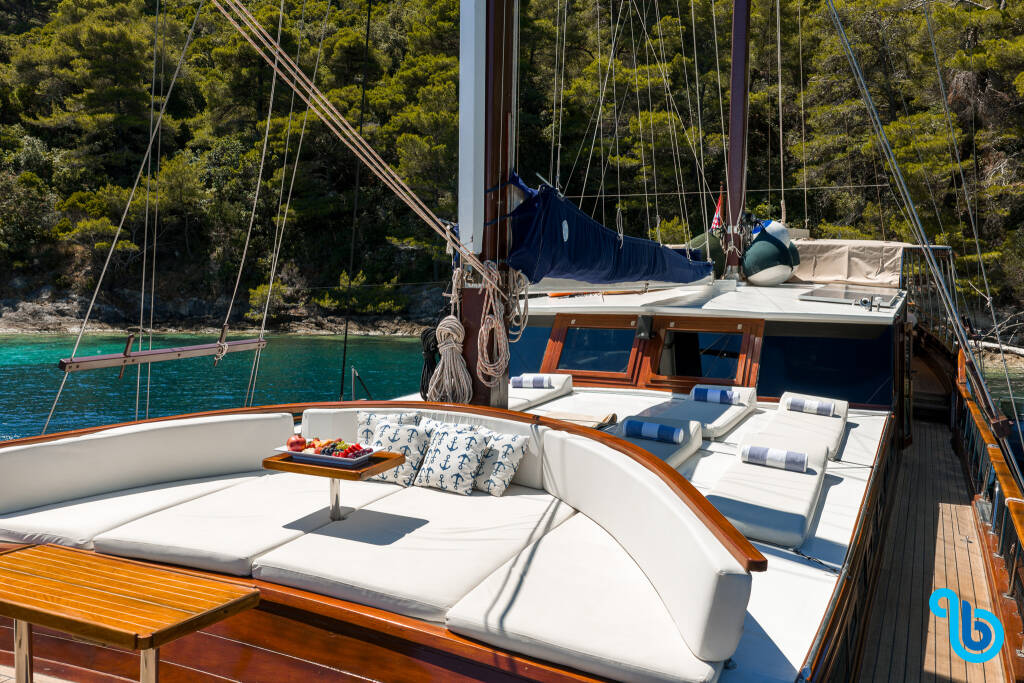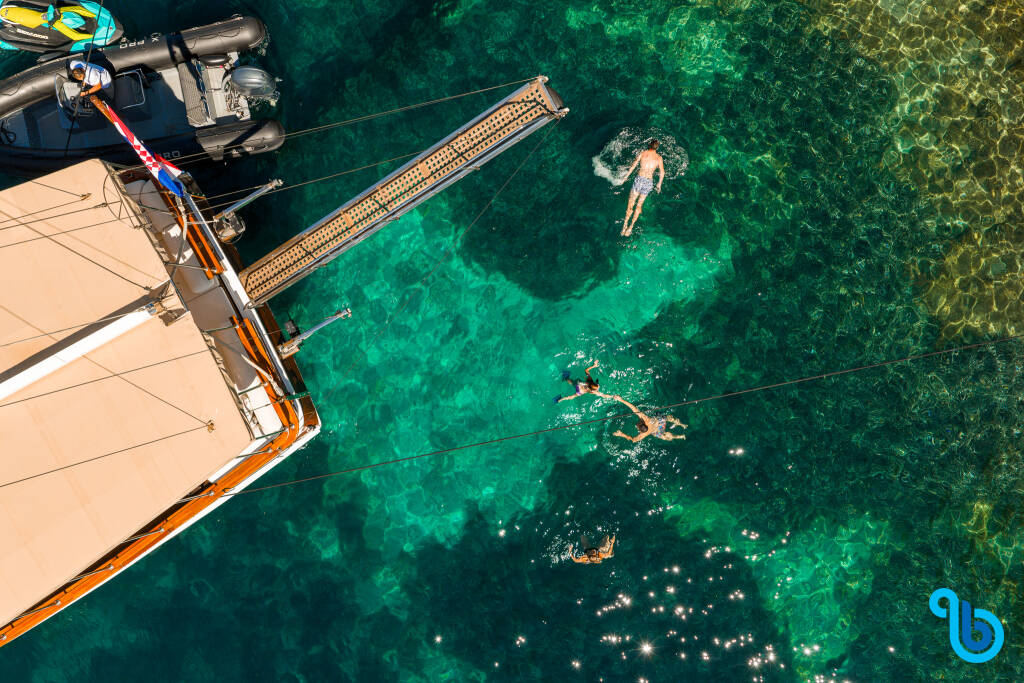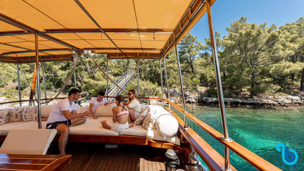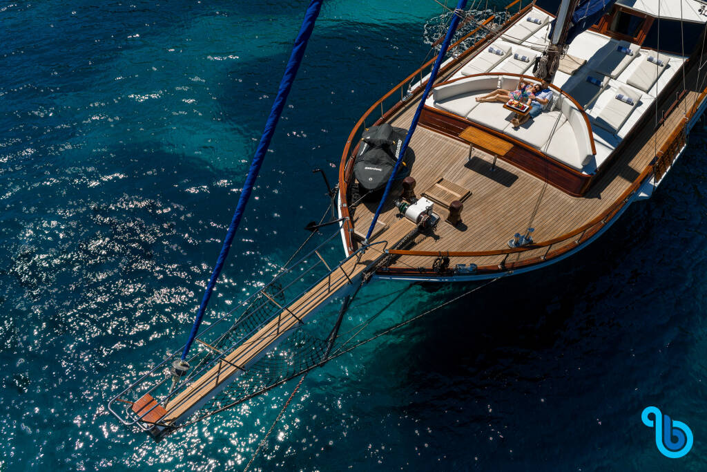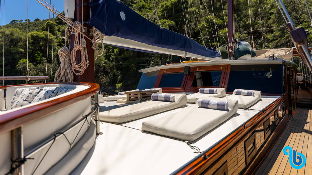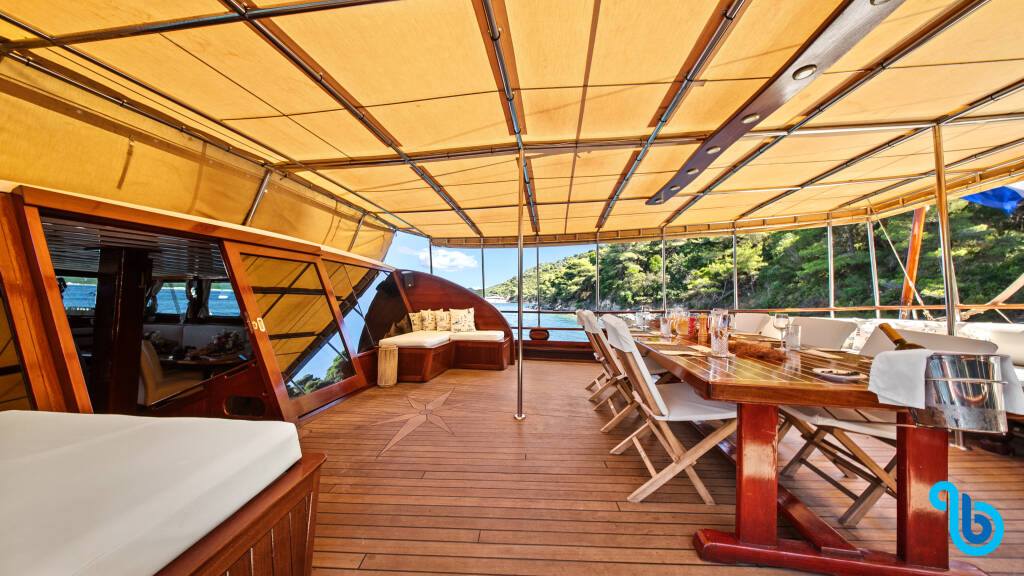 Goleta Gulet Eleganza, construido en 1997 está anclado en Croacia. Tiene 5 cabinas, puede acomodar 10 personas.