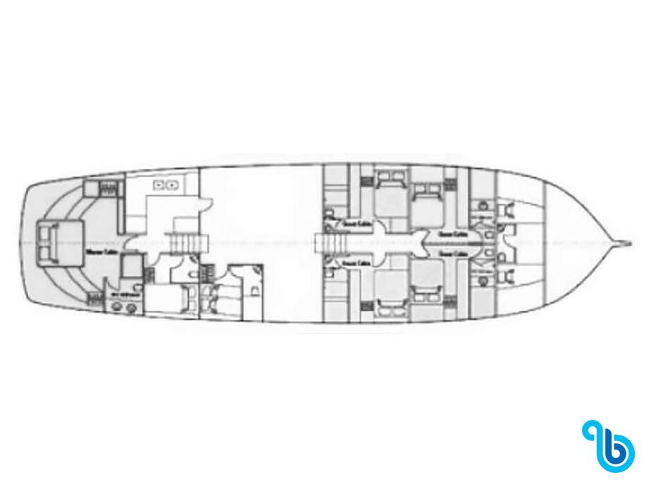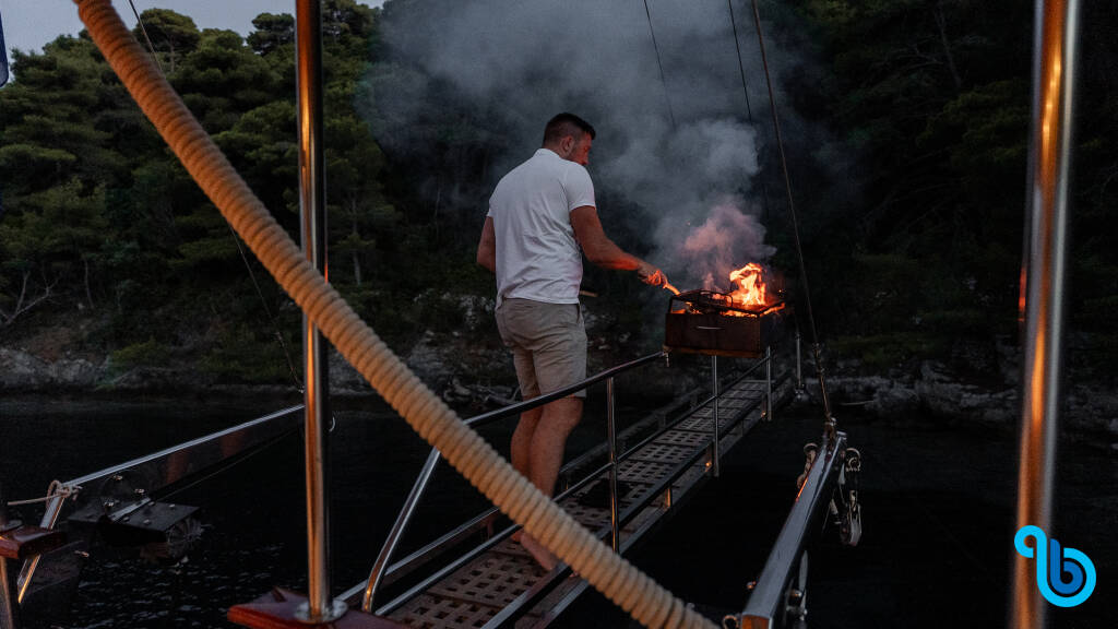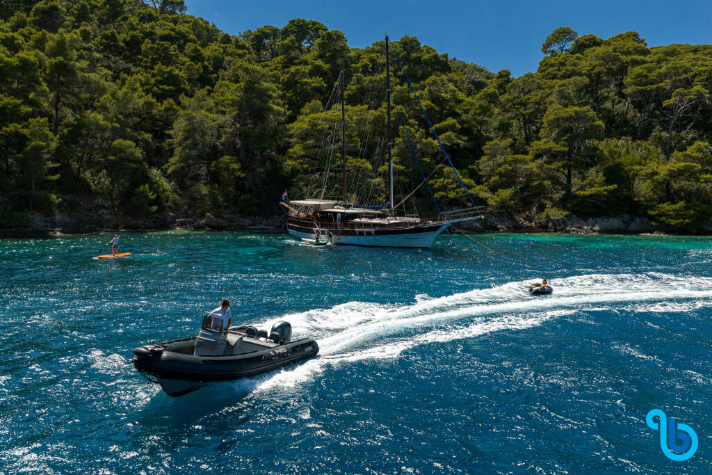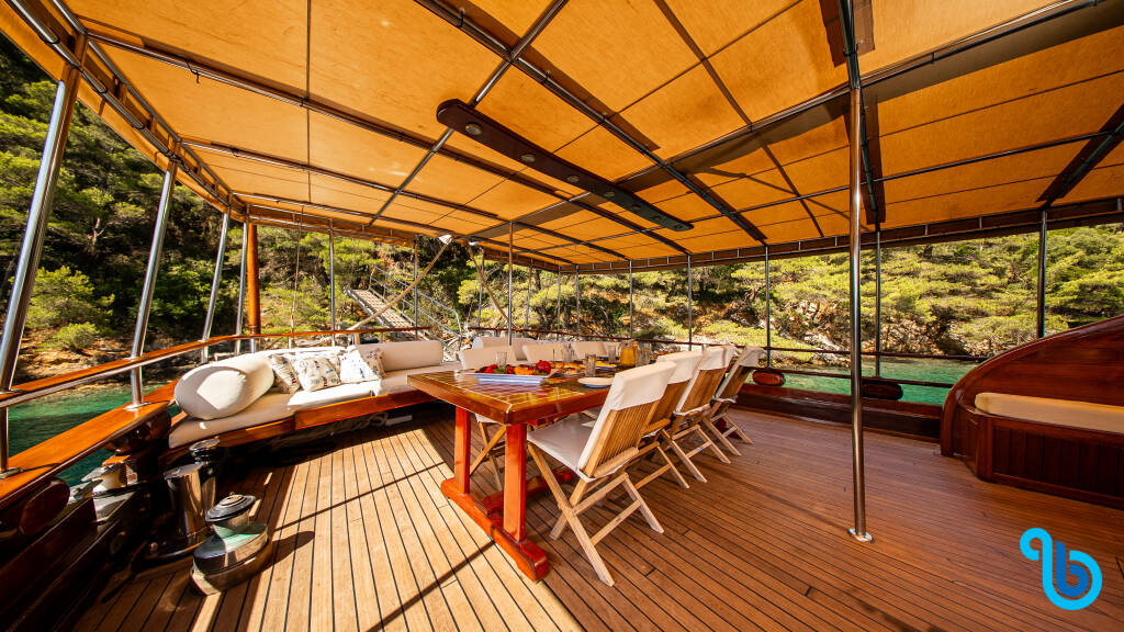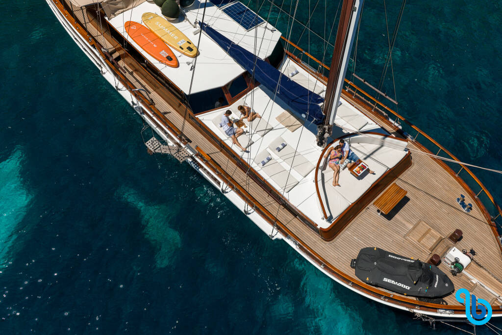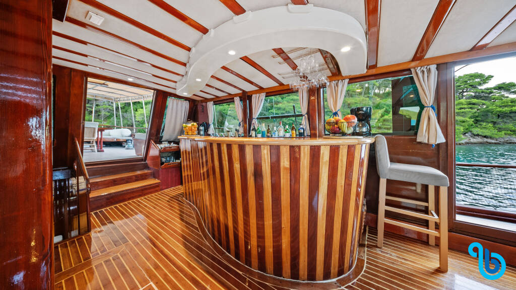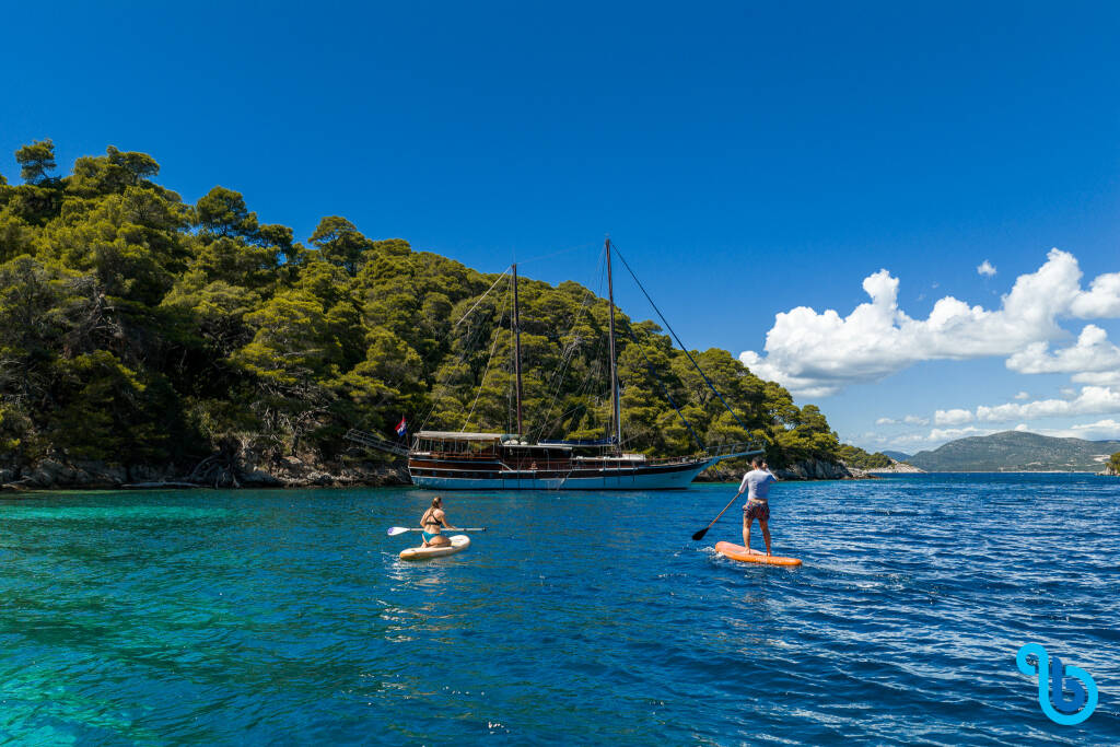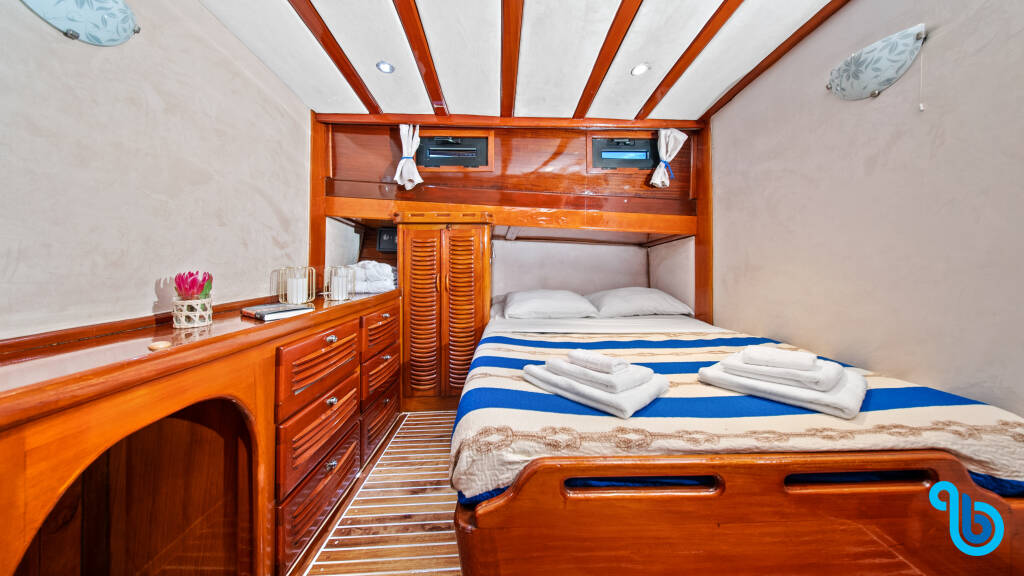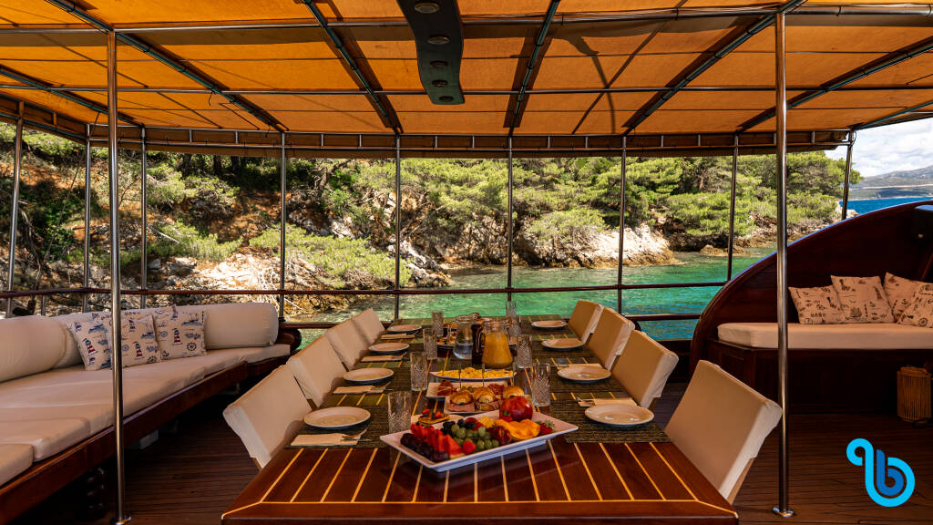 Goleta Gulet Eleganza, construido en 1997 está anclado en Croacia. Tiene 5 cabinas, puede acomodar 10 personas.