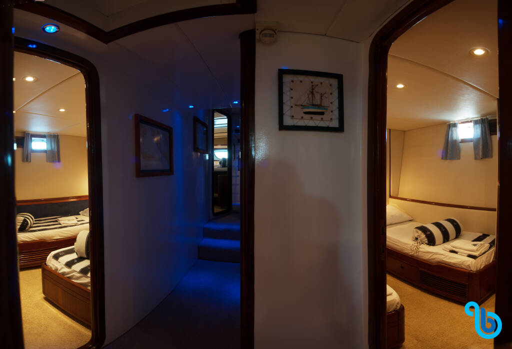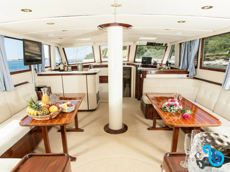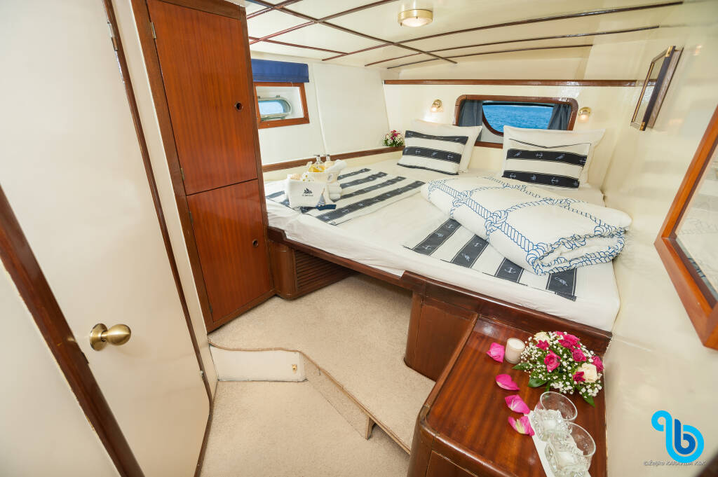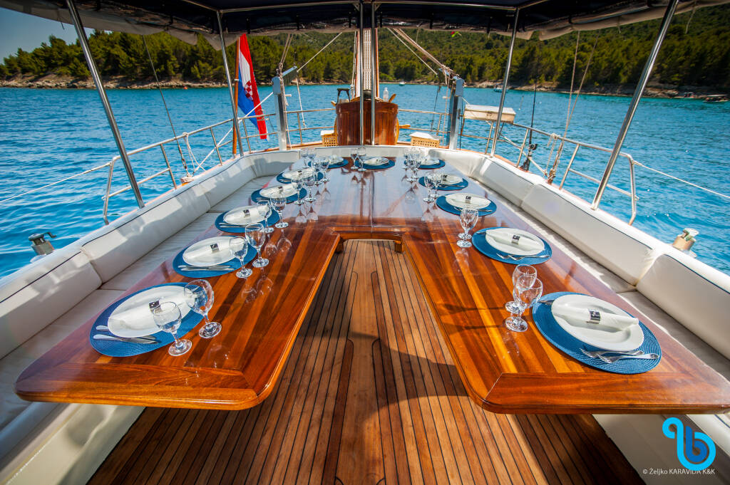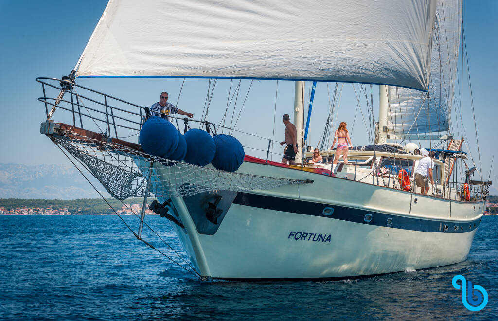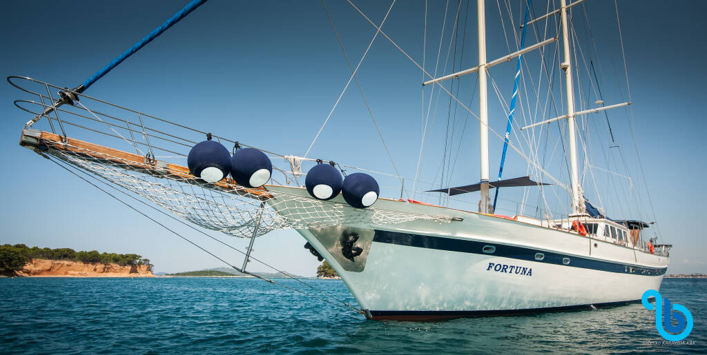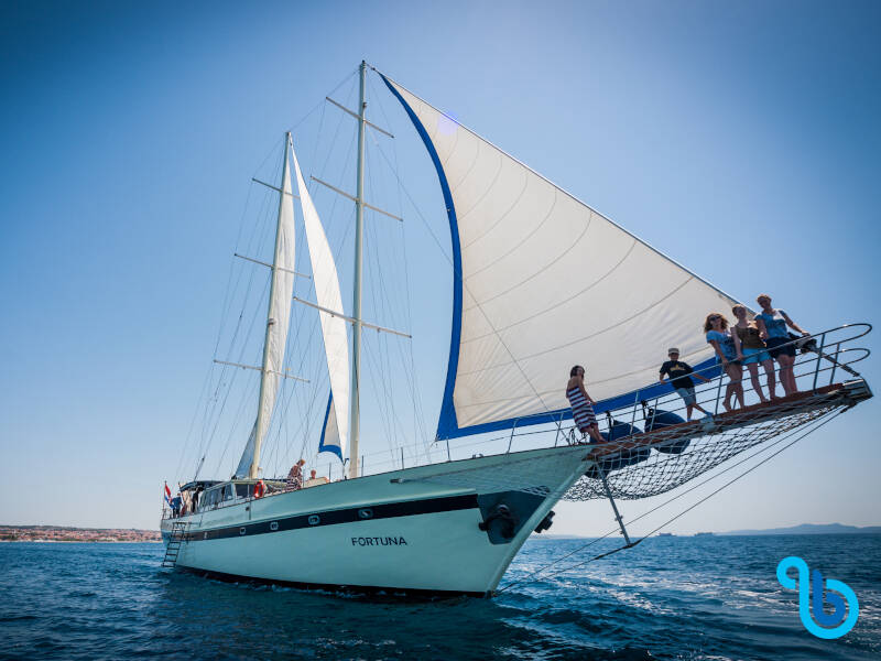 Goleta Gulet Fortuna Fortuna, construido en 1994 está anclado en Croacia. Tiene 6 cabinas, puede acomodar 12 personas.
