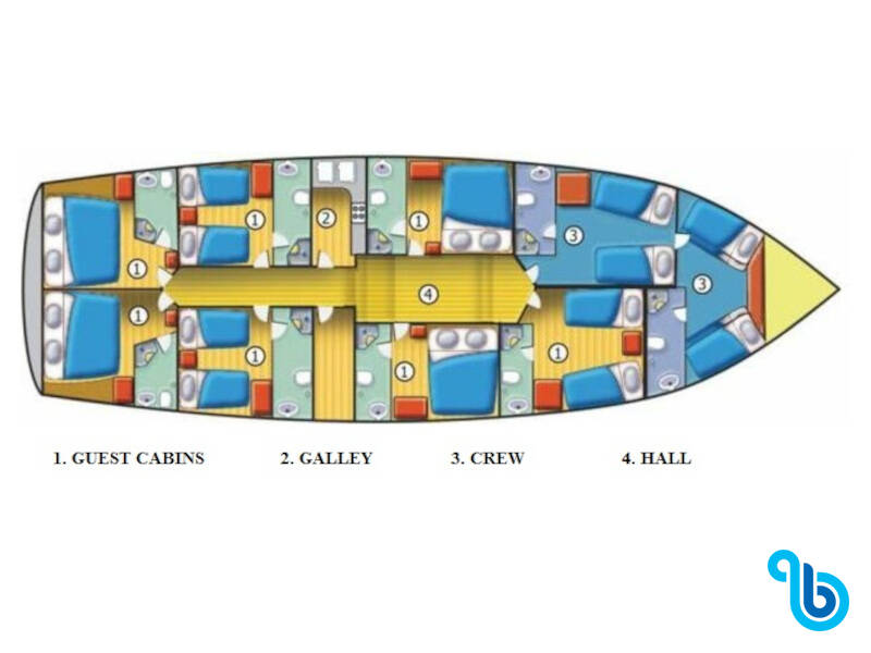La mayoría de las embarcaciones puede albergar entre 6 y 12 huéspedes, según su configuración interior.