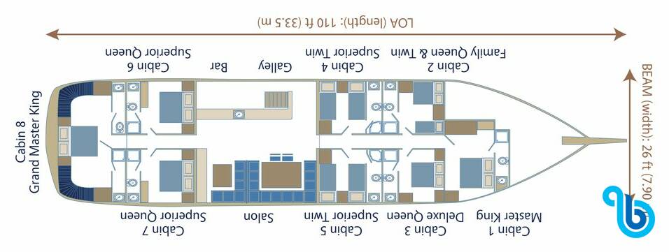 La mayoría de las embarcaciones puede albergar entre 6 y 12 huéspedes, según su configuración interior.