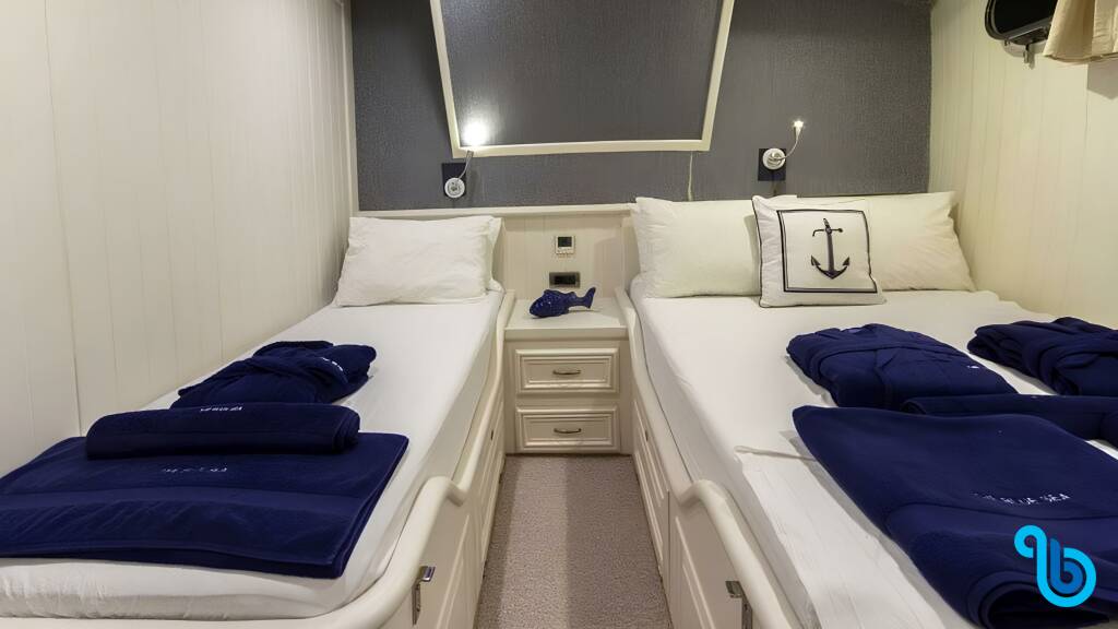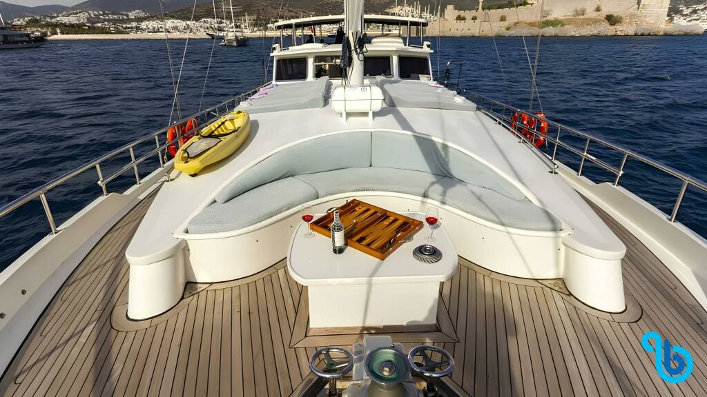 Salida por la mañana después del desayuno servido a bordo en el magnífico paisaje de la bahía de Datca, impulsado por la brisa hacia Orhaniye, una preciosa bahía, admirando la fortaleza medieval en una isla rocosa en la entrada. Durante la navegación, una posible parada para relajarse o recrearse con las instalaciones deportivas previstas. Este puerto natural le proporcionará un memorable descanso nocturno bajo un magnífico cielo estrellado.