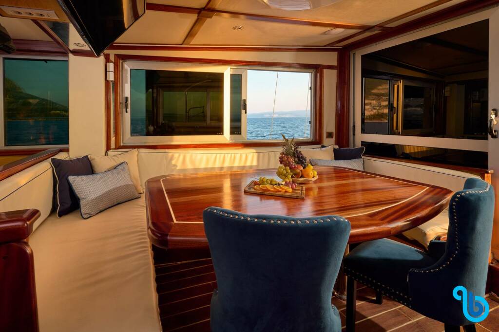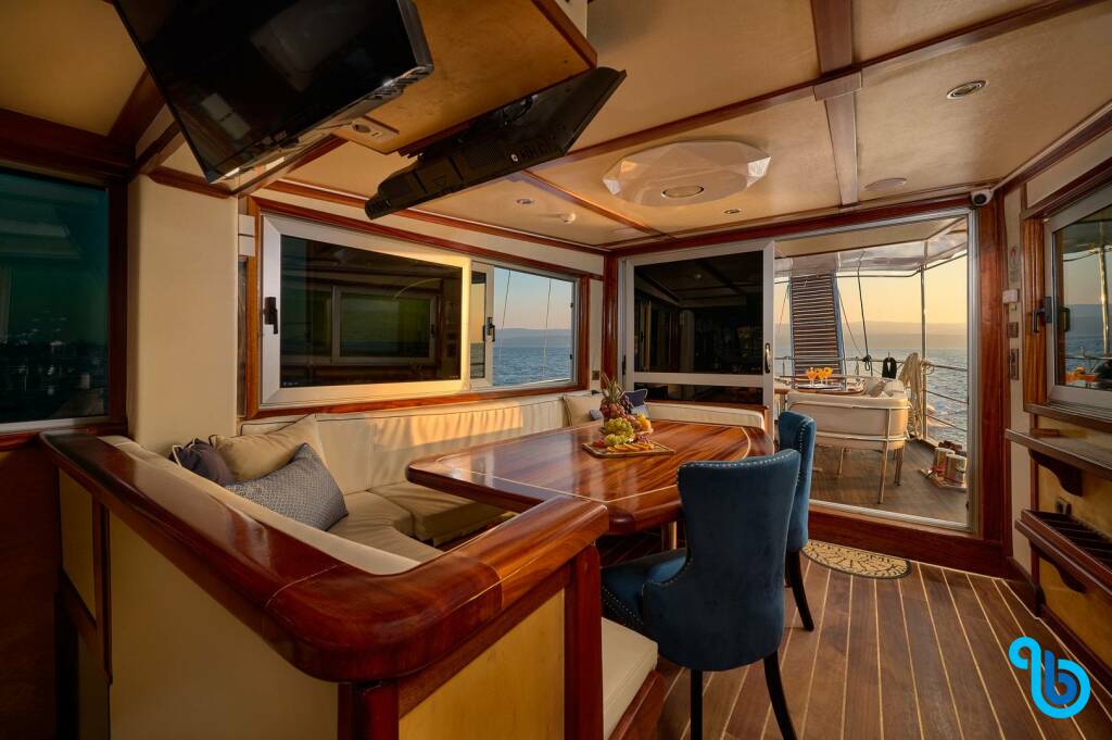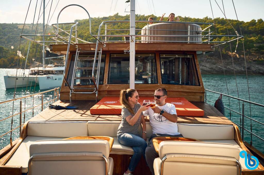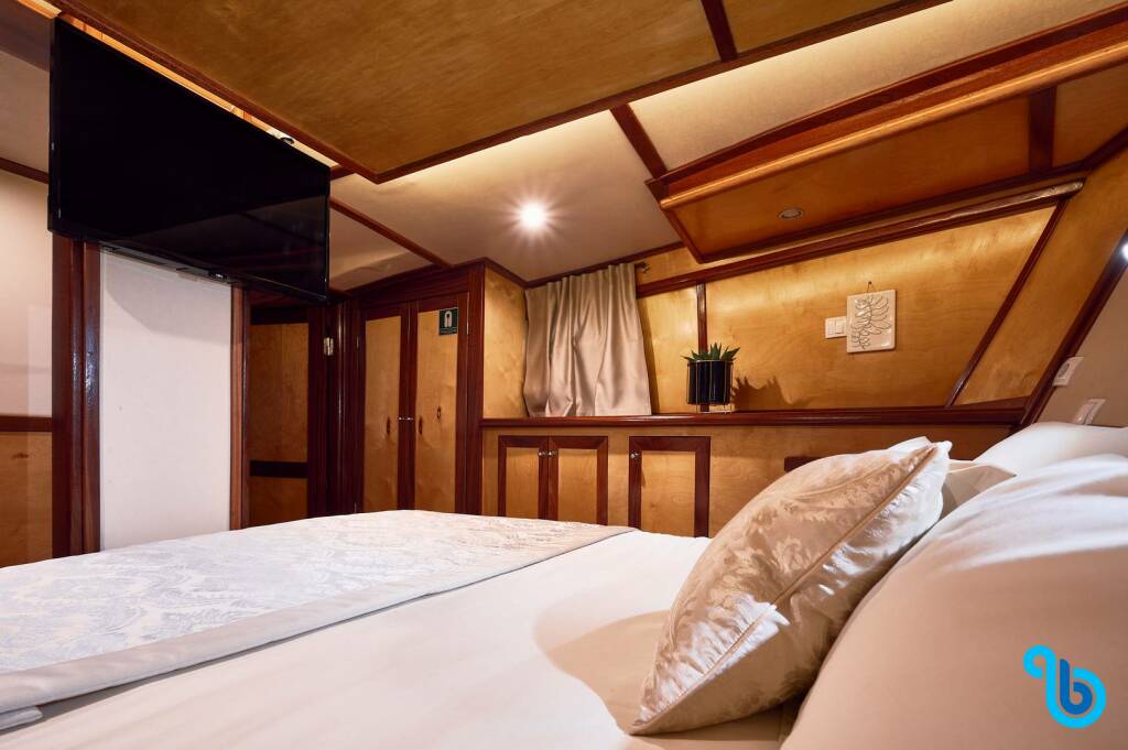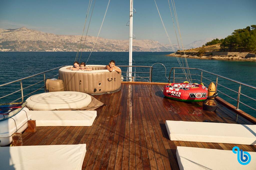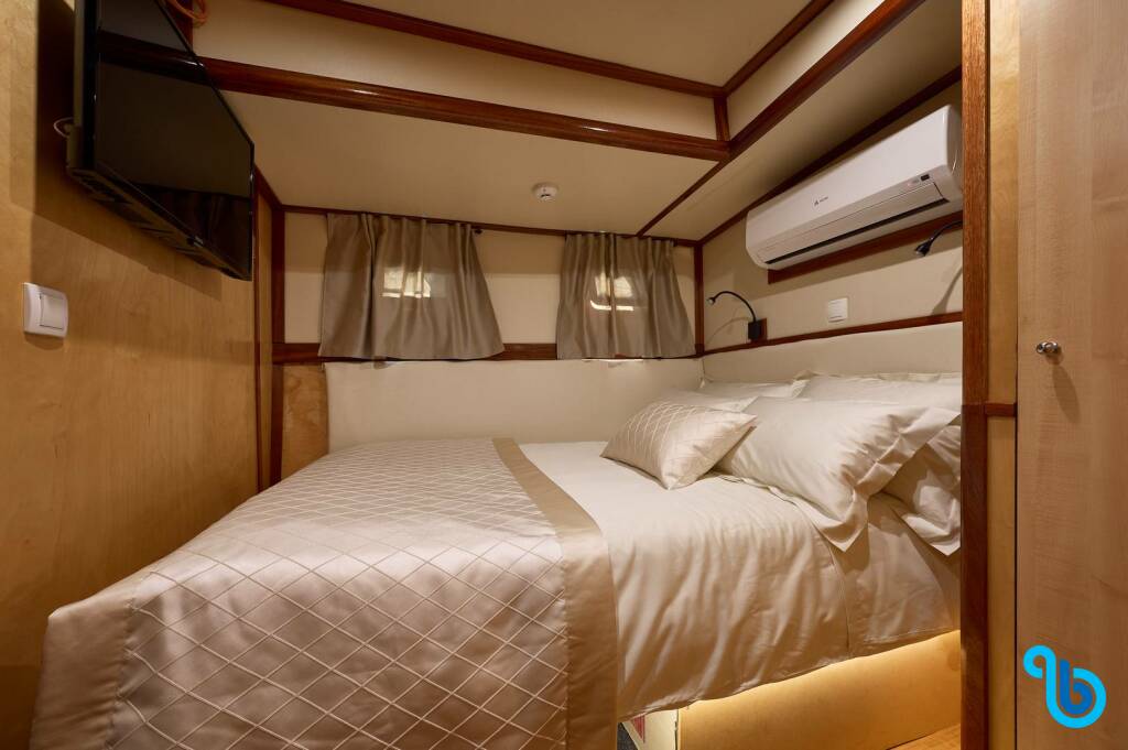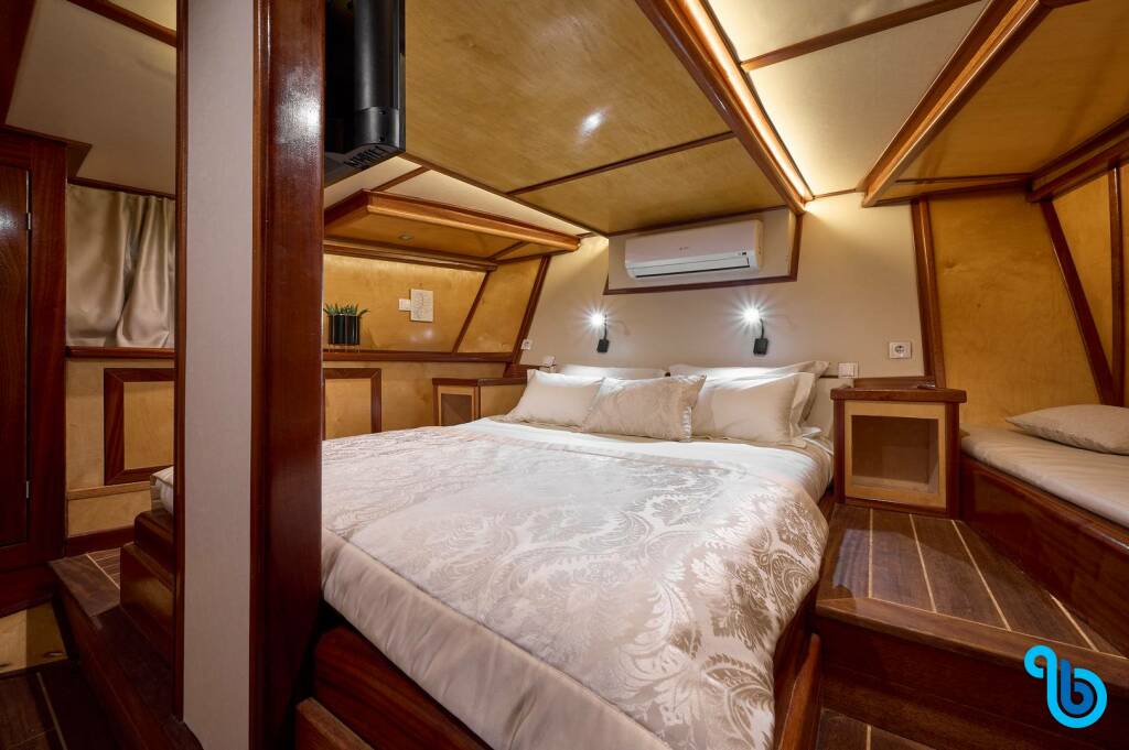 Goleta Trebenna Trebenna, construido en 1987 está anclado en Croacia. Tiene 4 cabinas, puede acomodar 8 personas.