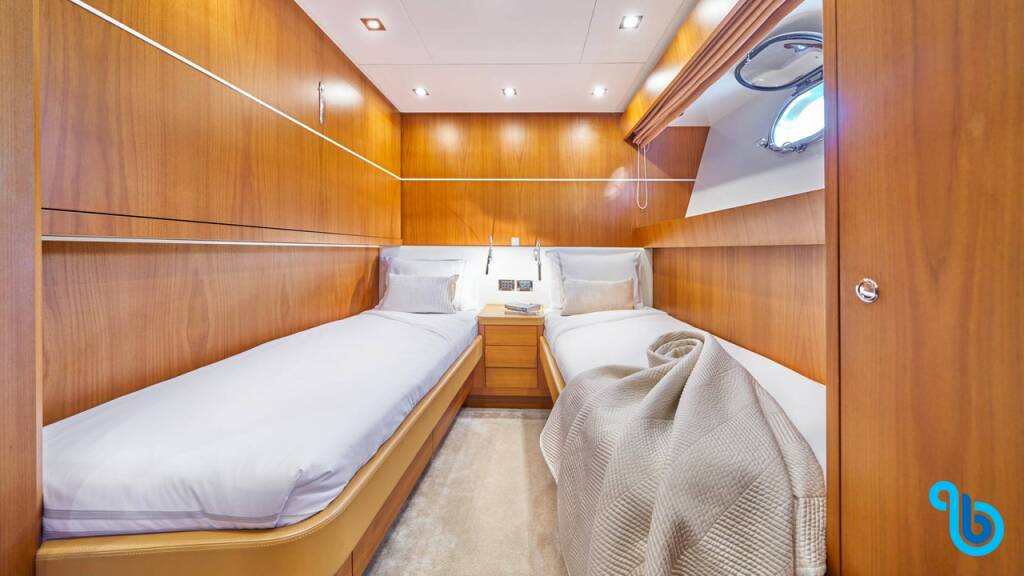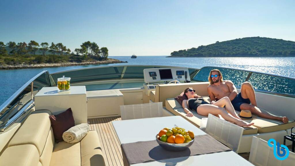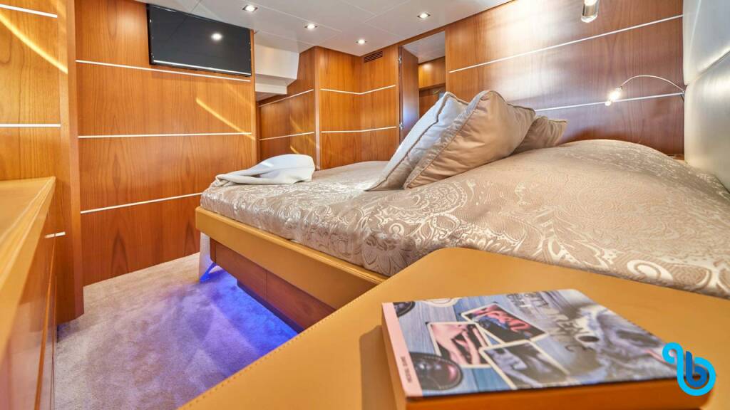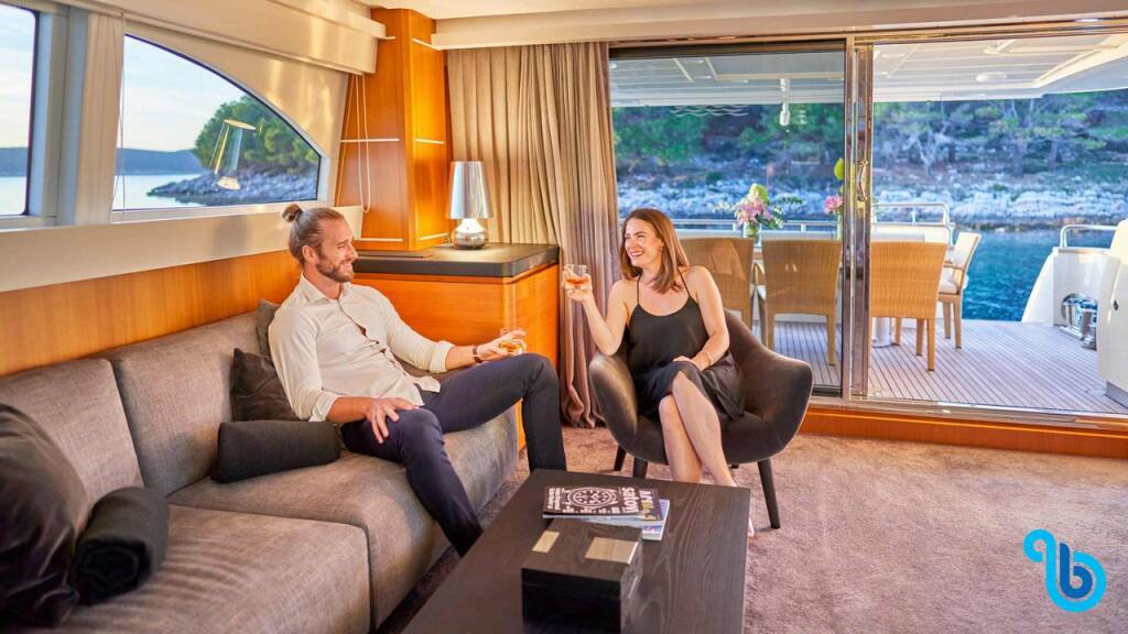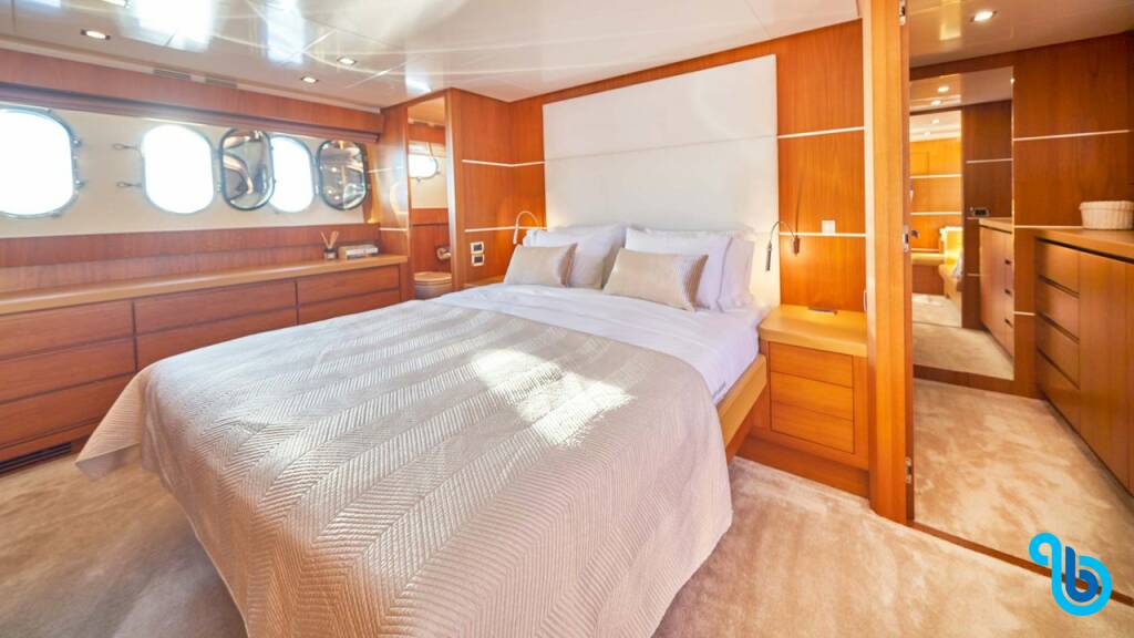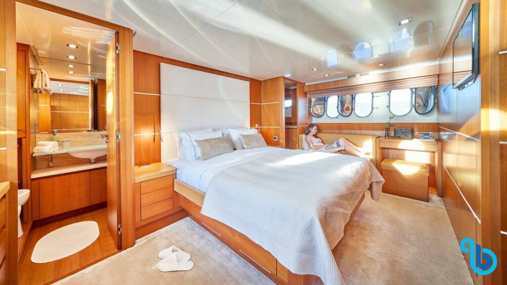 Yate de lujo a motor Canados 86 Karisma, construido en 2008 está anclado en Croacia. Tiene 4 cabinas, puede acomodar 8 personas.