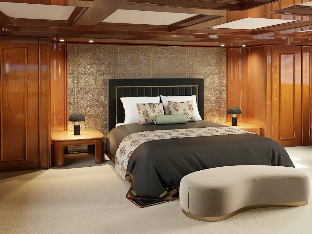 Accommodation: She boasts a full size Master Suite, including walk in dressing room and Office, plus His & Hers Bathrooms. One VIP Cabin is located on the Bridge Deck, with four cabins below, 2 x Double and 2 x Twin (with one Pullman in each of the Twins)