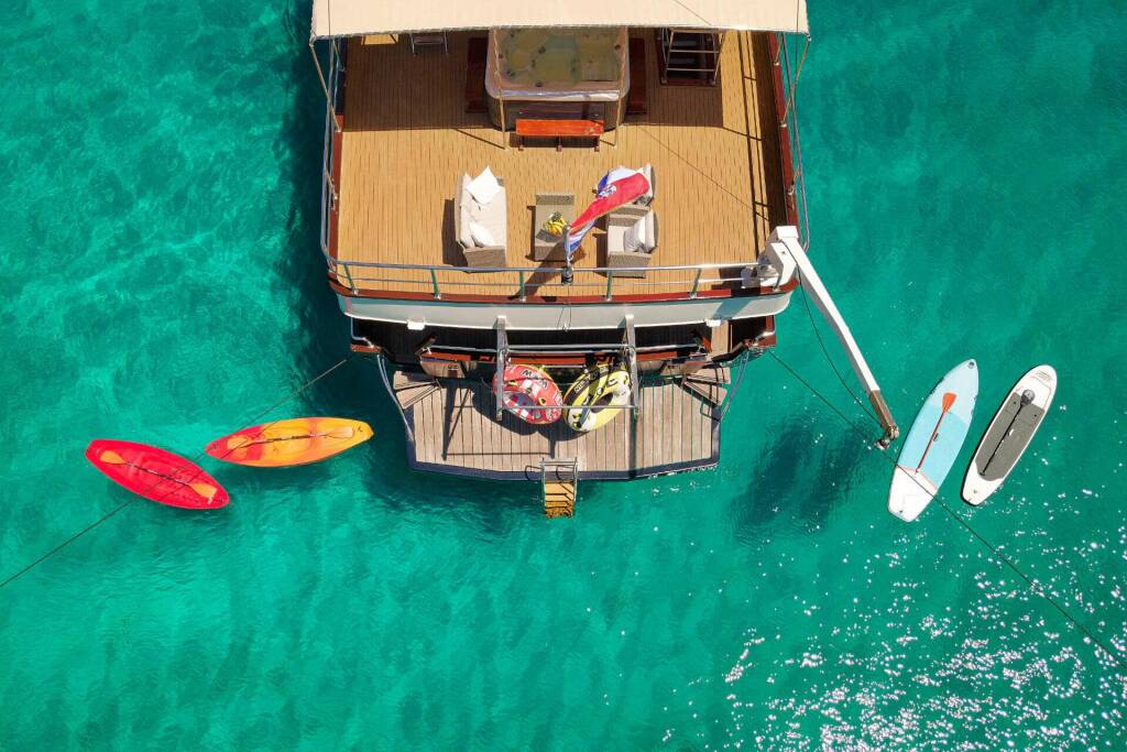 Motorized water toys charged at 150 Euro per hour. Luna has the following water toys: water ski, water donut (2), SUP (2), kayak, snorkeling gear and fishing rods (2). Jet ski available on request and charged at 200 Euro per hour (the Jet Ski license to use the Jet ski is mandatory). The guests can rent more water toys such as sea bobs, jet boards etc. Please note should your clients rent more water toys such as sea bobs, e foils etc. we would need to bring an extra deck hand to help with the water toys (extra charge).