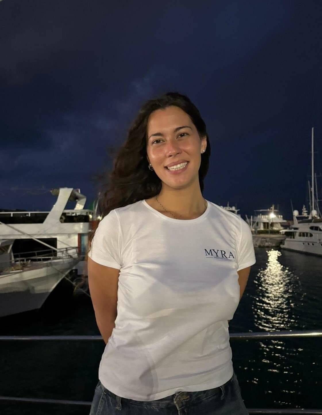 Maria serves as Chief Stewardess aboard Myra, bringing a unique blend of efficiency, warmth, and professionalism to the role. With exceptional organizational skills honed through balancing academic pursuits, sports, and private tutoring, Maria thrives in dynamic environments and handles pressure with calm precision. Her ability to multitask and manage time effectively ensures smooth daily operations and high standards of guest service on board. Maria's strong communication abilities and approachable nature stem from her experience in various work and volunteer roles, as well as growing up in a large family. Dedicated, personable, and detail-oriented, Maria creates a welcoming and polished atmosphere aboard Myra, ensuring every guest experience is seamless and memorable.